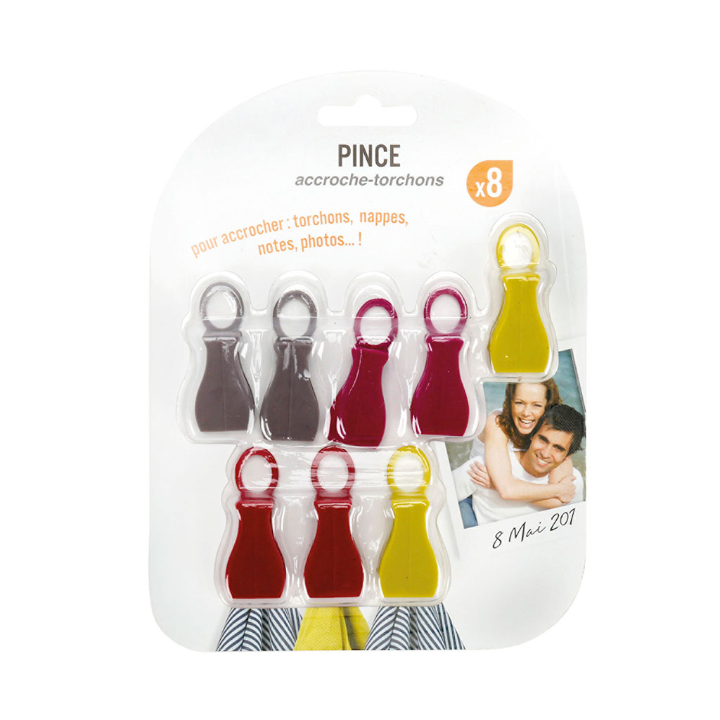 Lot de 8 pinces plastique accroche-torchons