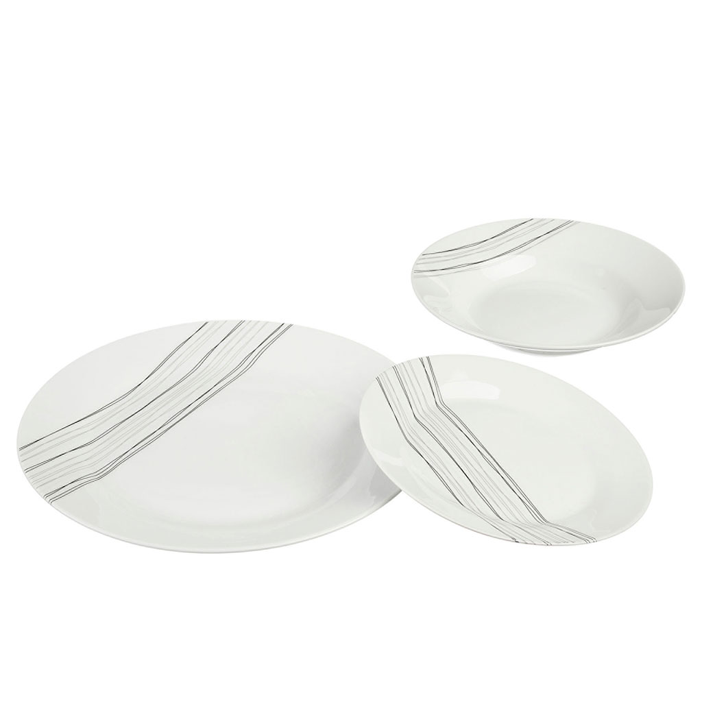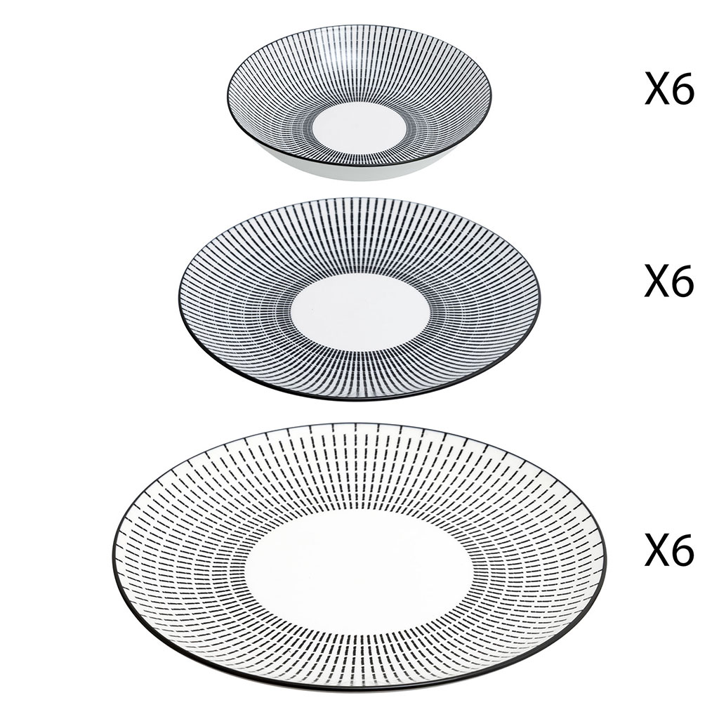 Service vaisselle 18 pièces LUNIS porcelaine noir et blanc