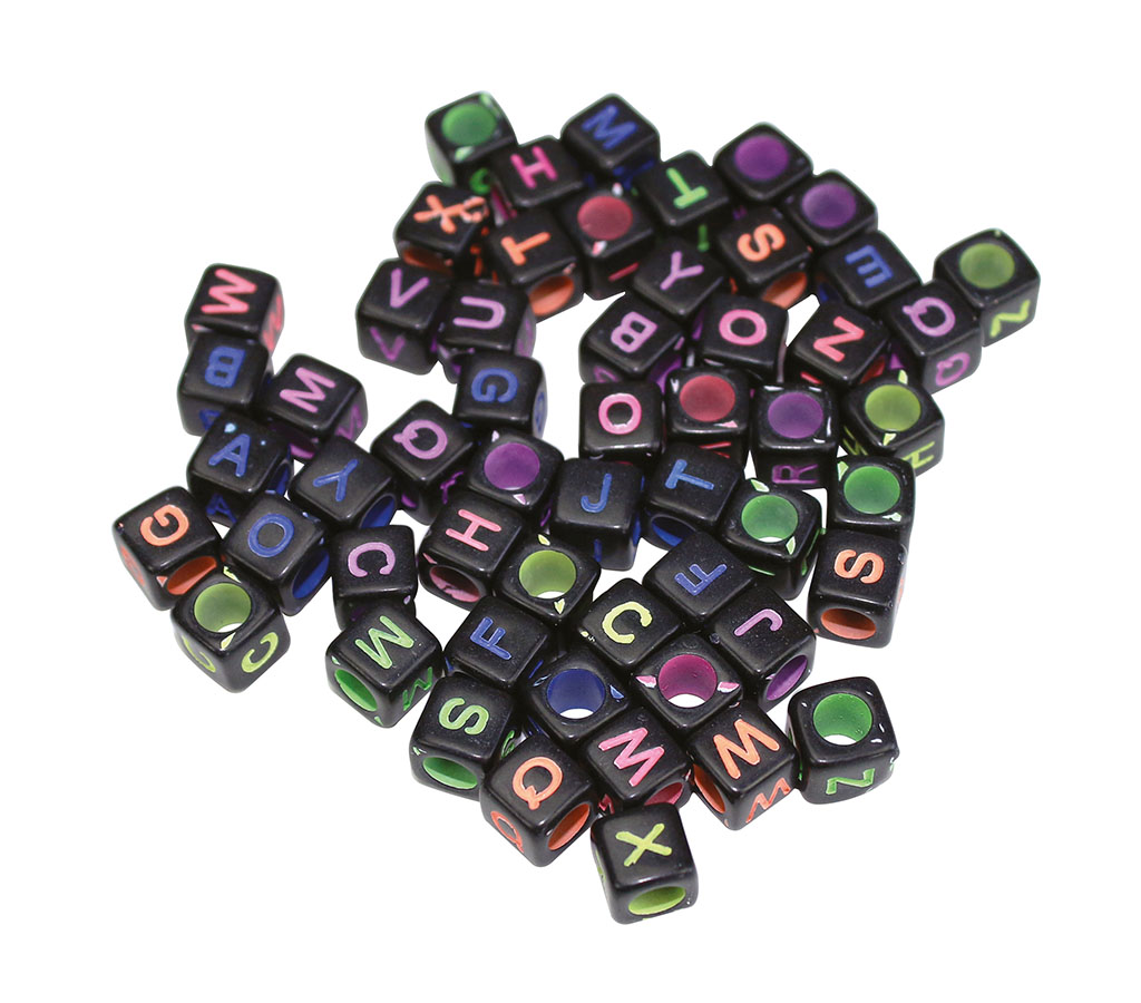 Sachet de 285 perles carrées noires lettres colorées