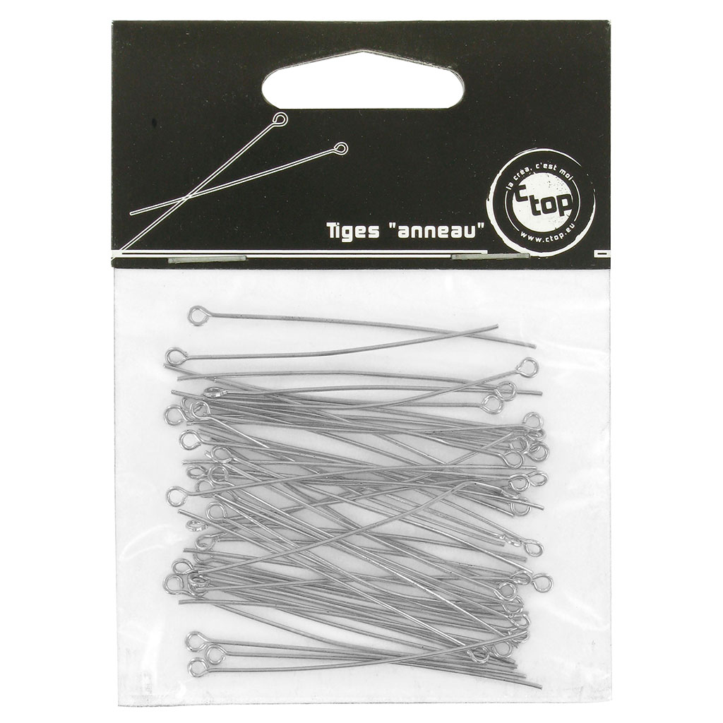 Sachet de 50 tiges à boucle argent 55mm