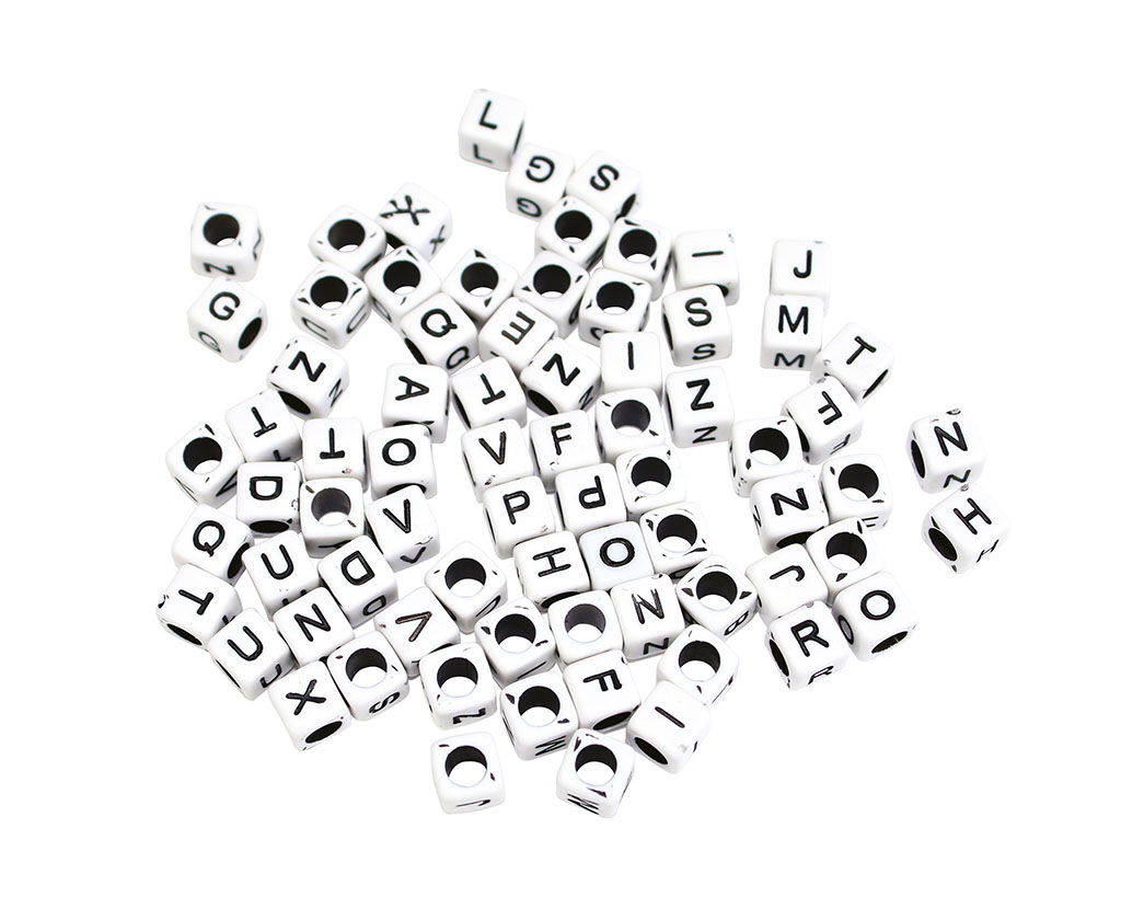 Sachet de 345 perles carrées blanches lettres noires