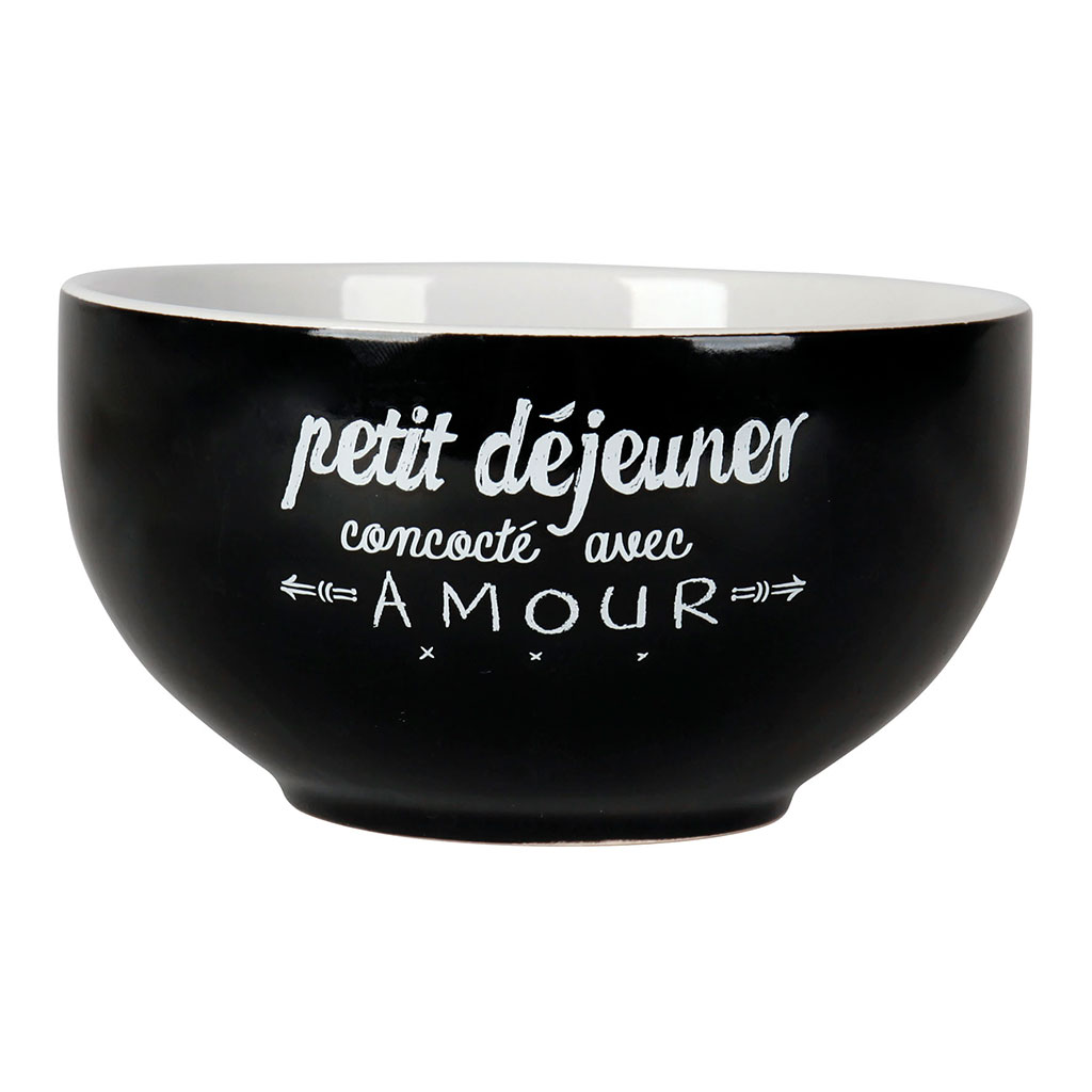 Bol grès noir à texte blanc CAFE CREME 65cl