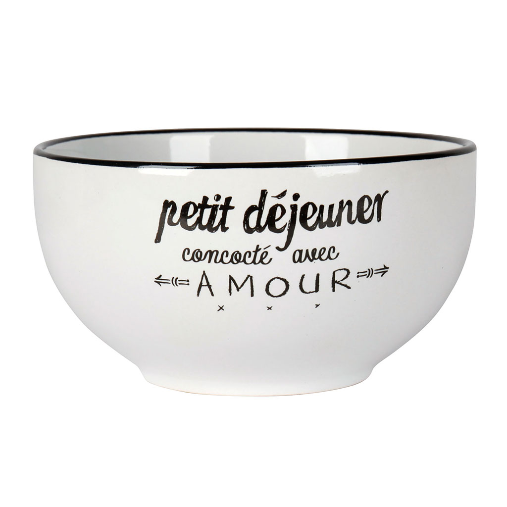 Bol grès blanc à texte noir CAFE CREME 65cl