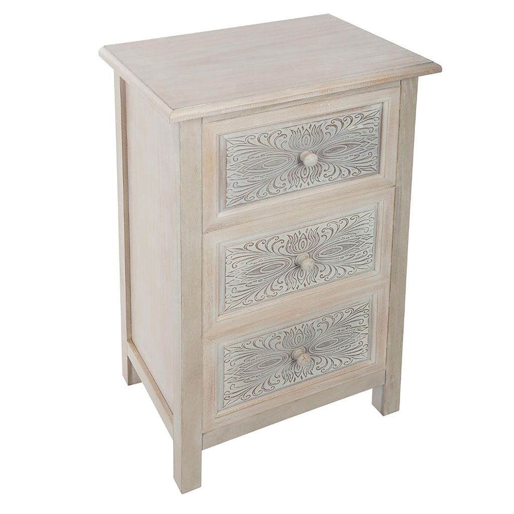 Commode bois effet cérusé 3 tiroirs HINA 48x80x34cm - ATMOSPHERA