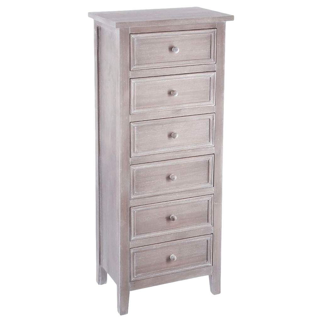 Chiffonnier CHARME cérusé 6 tiroirs 45x113x30cm - ATMOSPHERA