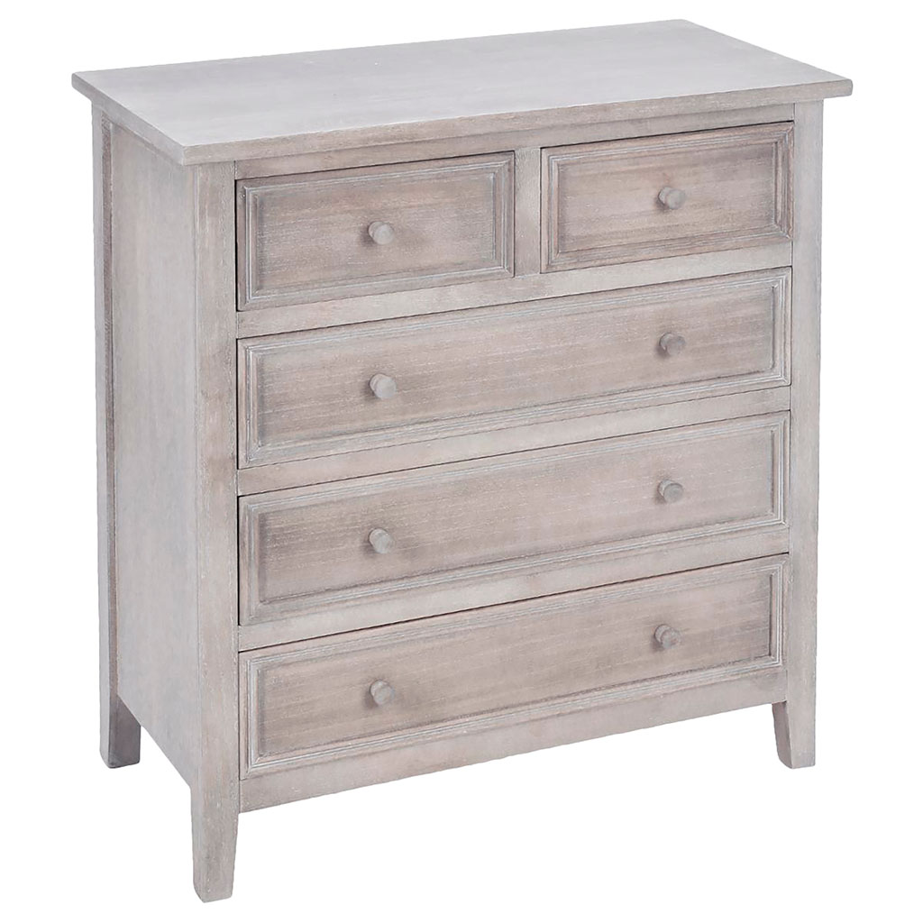 Commode CHARME 5 tiroirs bois blanchi 72.5x81x34.5cm - ATMOSPHERA