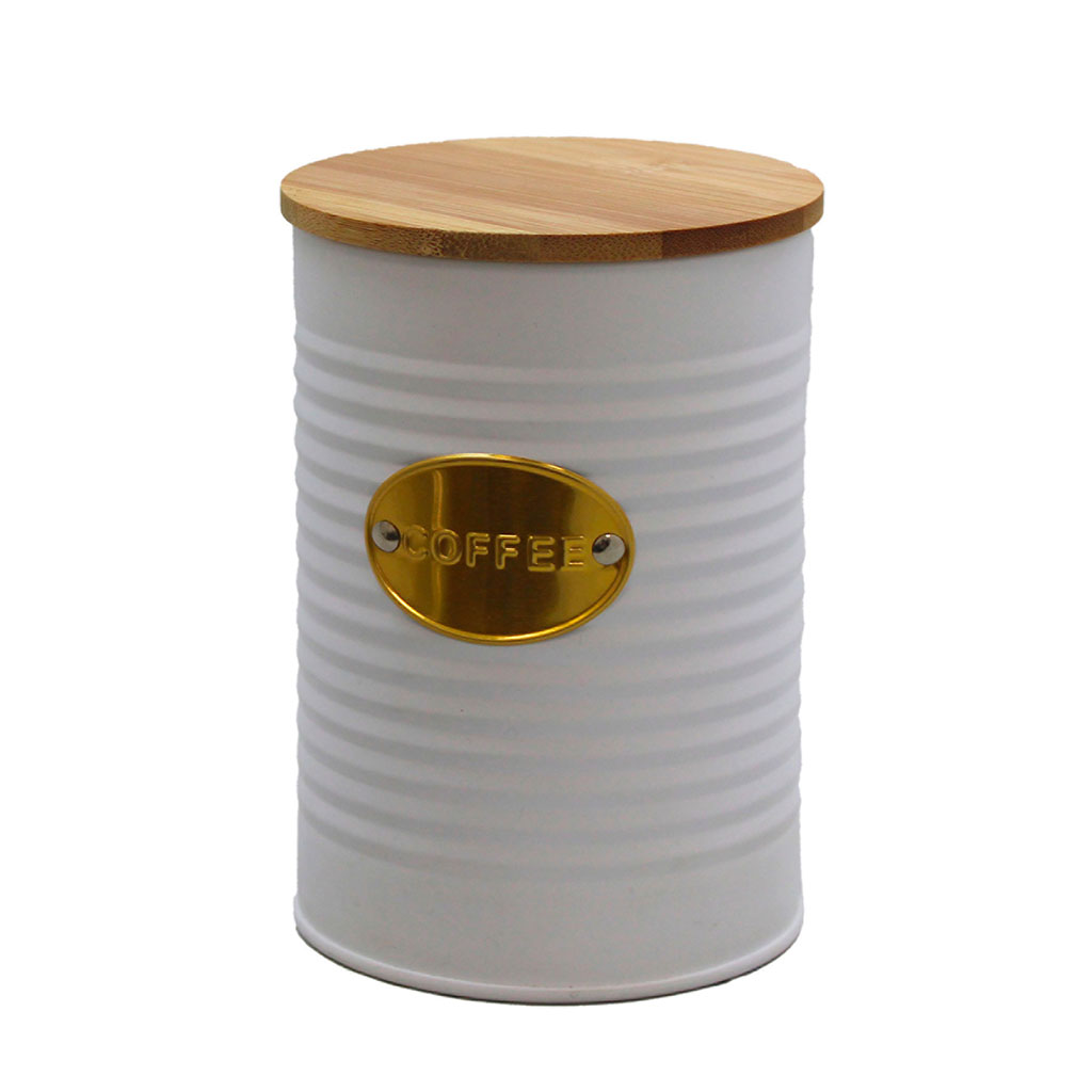 Boite à café métal et couvercle bambou blanc D 10x14cm