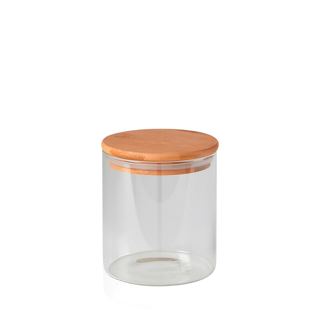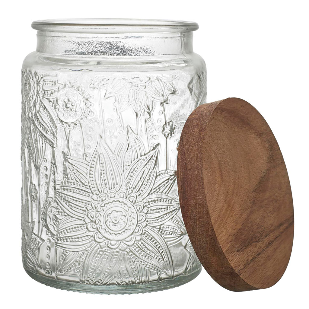 Bocal verre et couvercle acacia motifs en relief 70cl