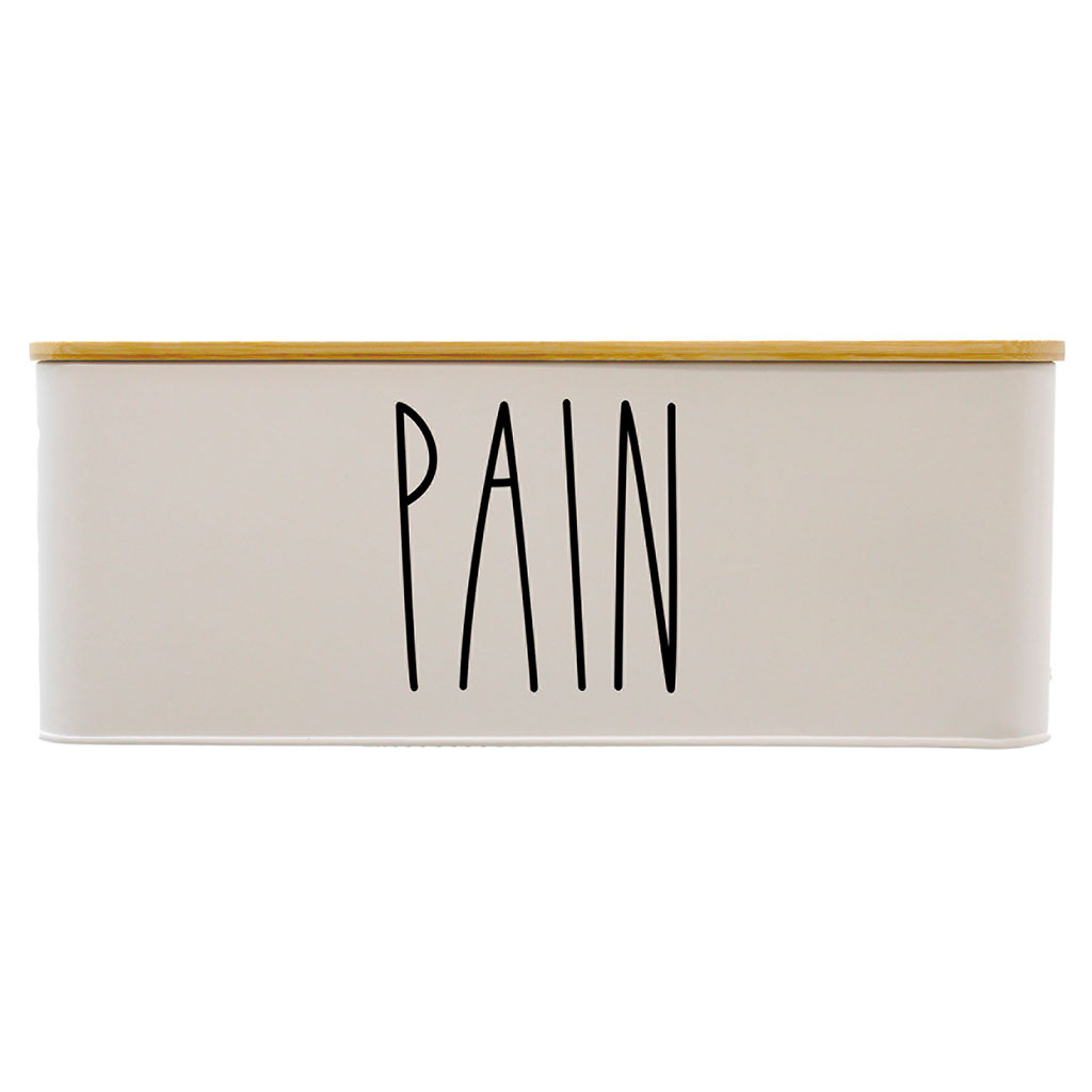 Boite à pain métal et couvercle bambou blanc 33x12x18cm