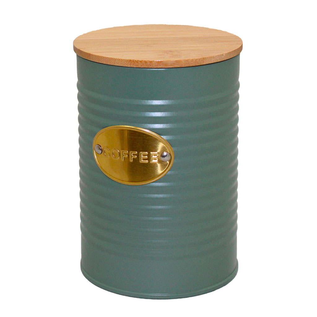 Boite à café métal et couvercle bambou vert D 10x14cm