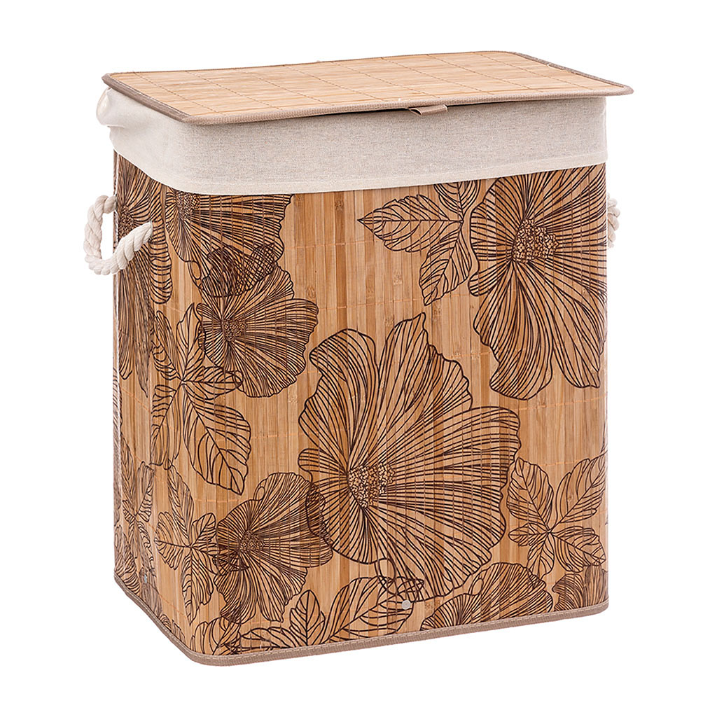 Panière à linge rectangulaire bambou imprimée 41.5x50x30cm