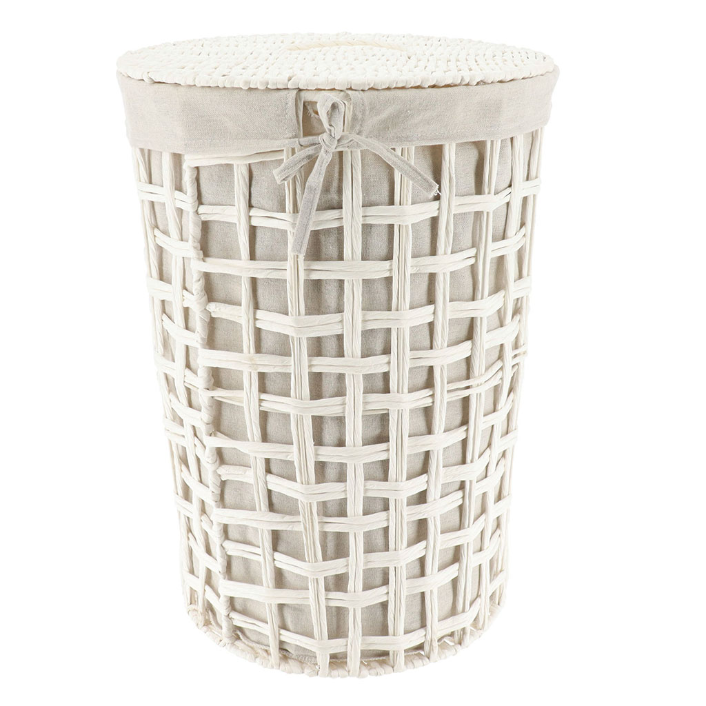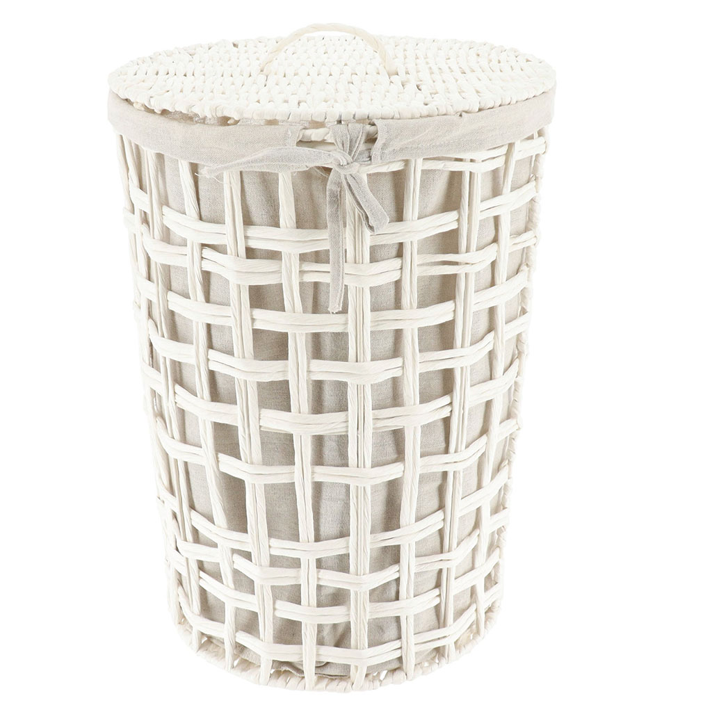 Panière à linge ronde tressée blanc 35x48x35cm