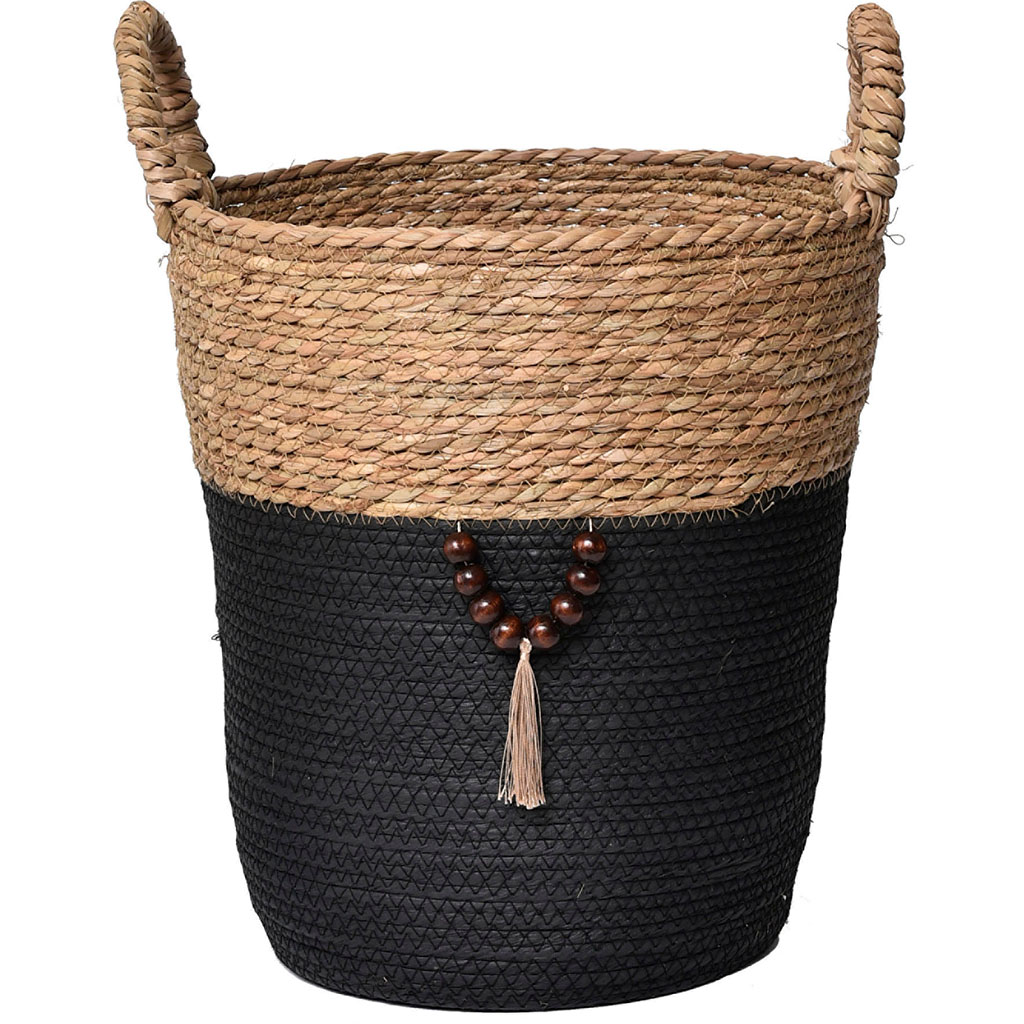 Panière à linge ronde matière végétale noire 35x38x35cm
