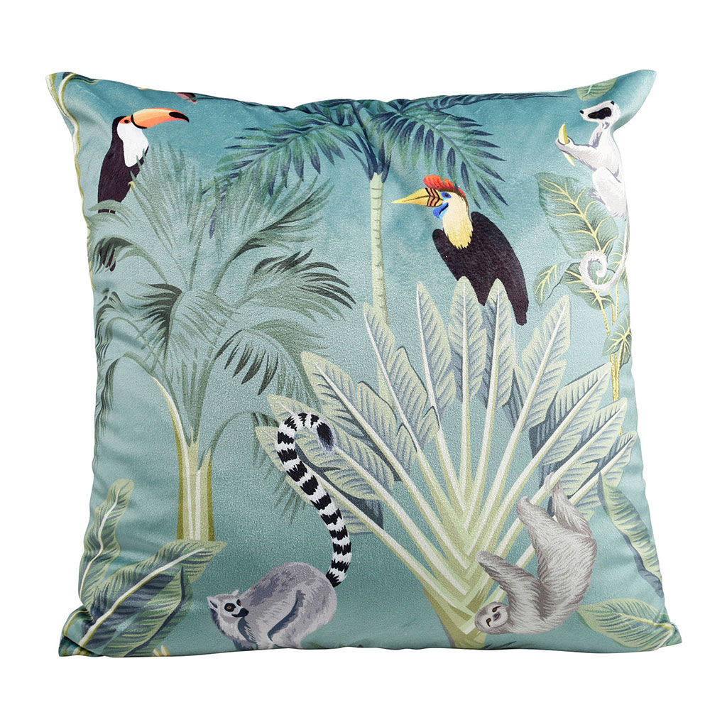 Housse de coussin polyester JUNGLE AQUA 40x40cm