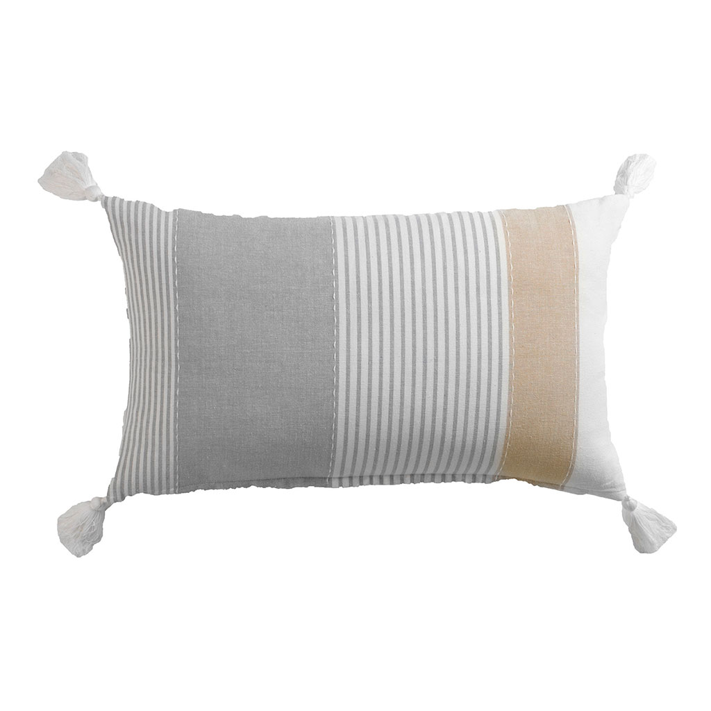Coussin déhoussable coton ILIADE avec pompons 30x50cm