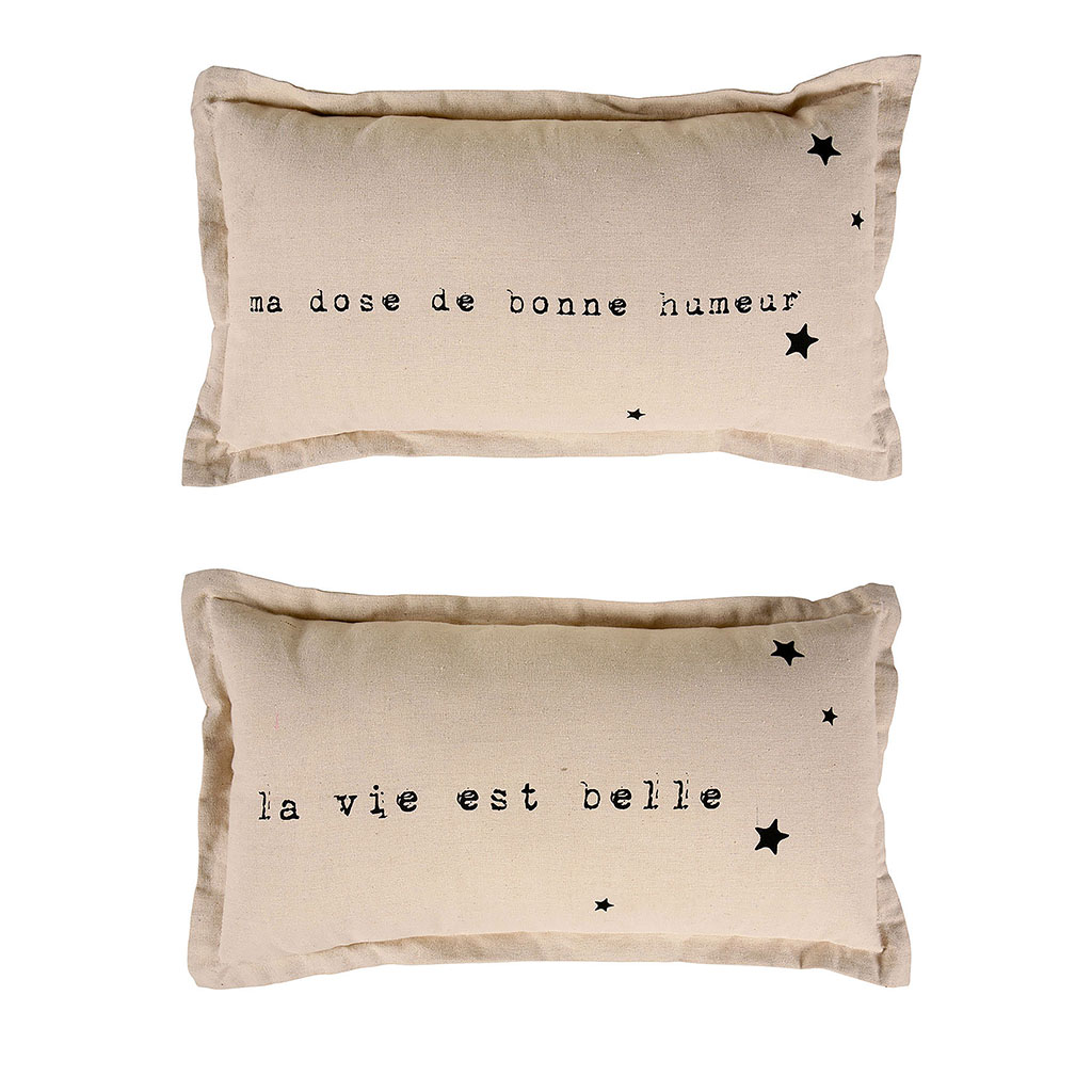 Coussin déco rectangulaire polyester bonheur 30x60cm