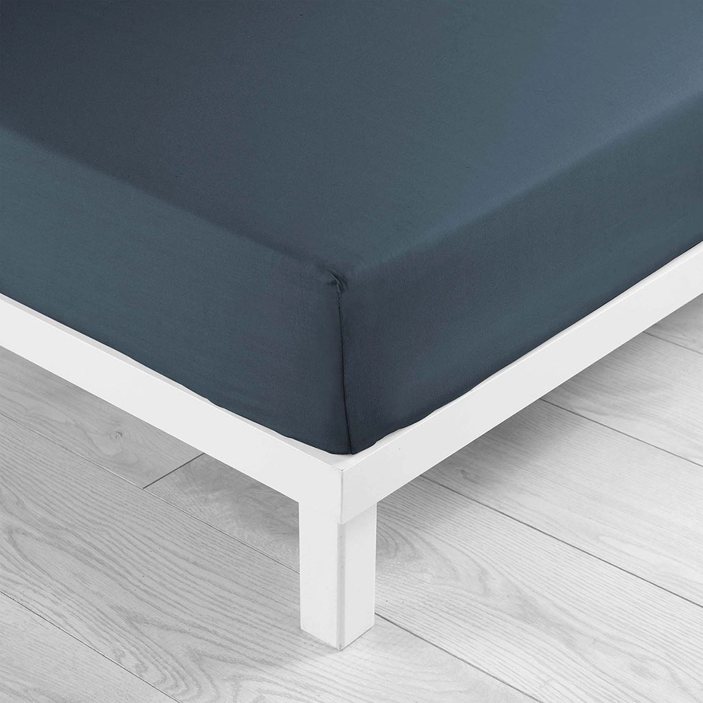 Drap housse coton 57 fils bleu canard 160x200cm
