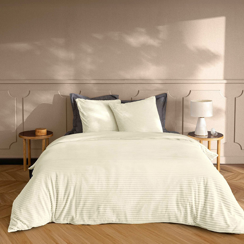 Parure housse de couette flanelle VELOUTEA naturel 220x240cm