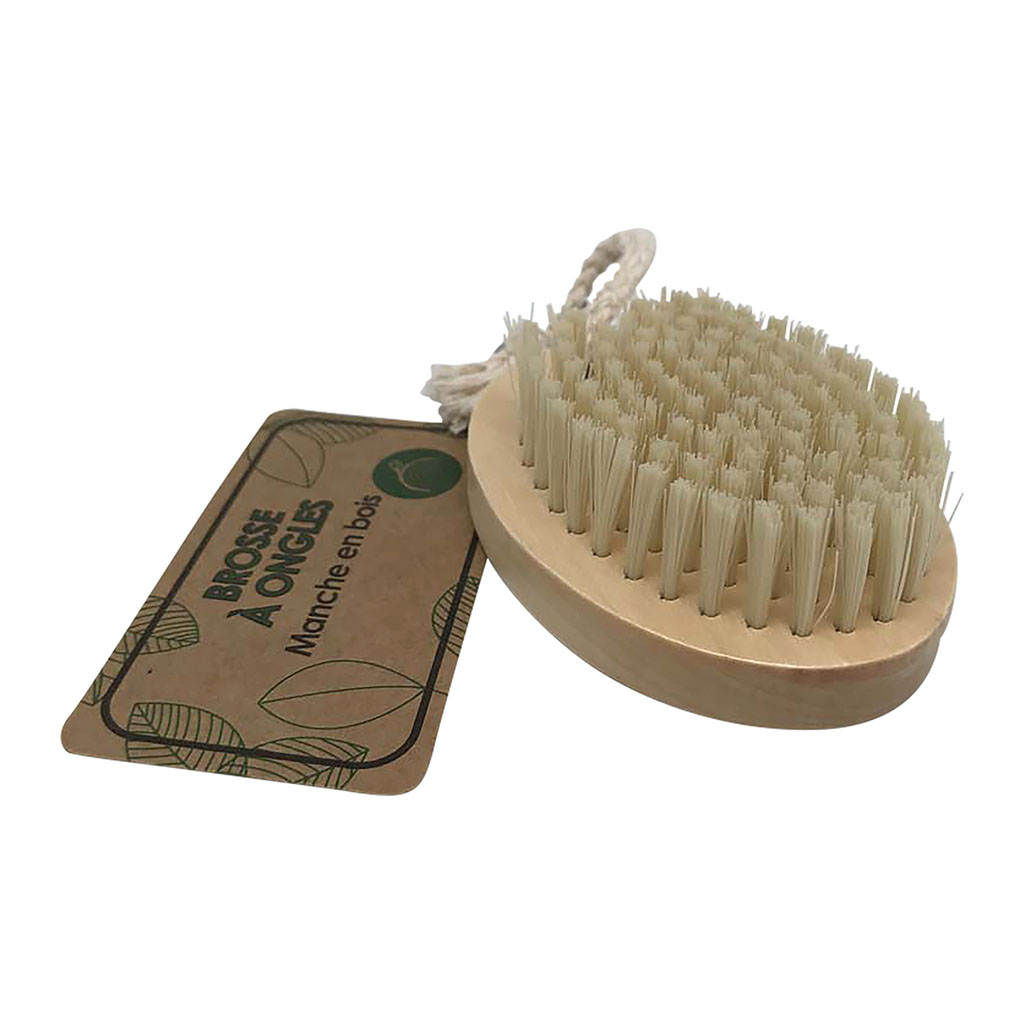 Brosse à ongle ovale manche bois 4x13.5x6cm