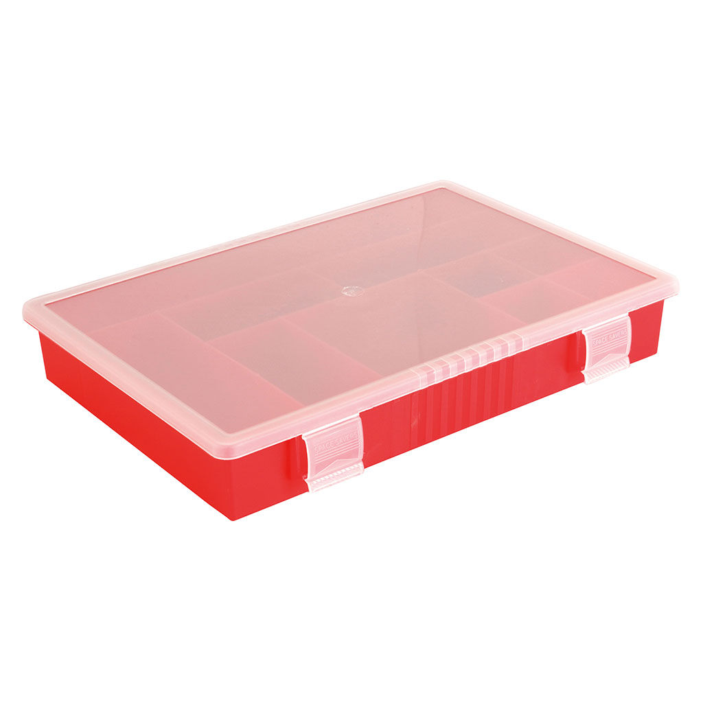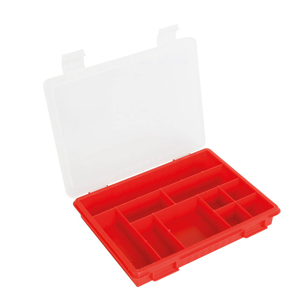 boîte de rangement 10 cases plastique rouge 34x24cm