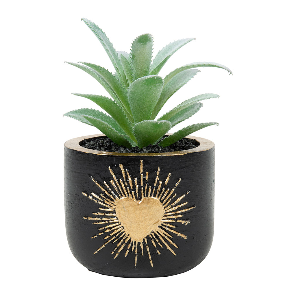 Plante cactée artificielle et pot bois noir et or H 13cm