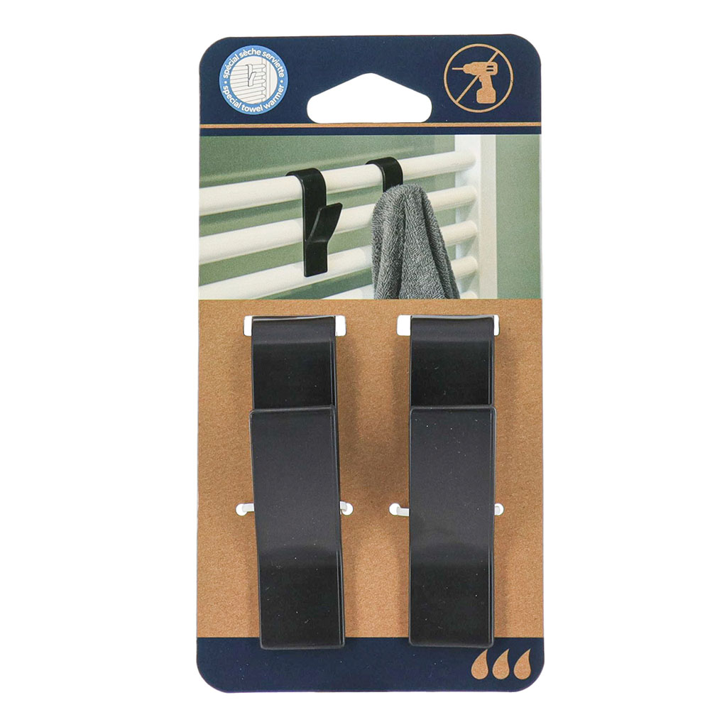 Lot de 2 crochets sèche serviette plastique noir
