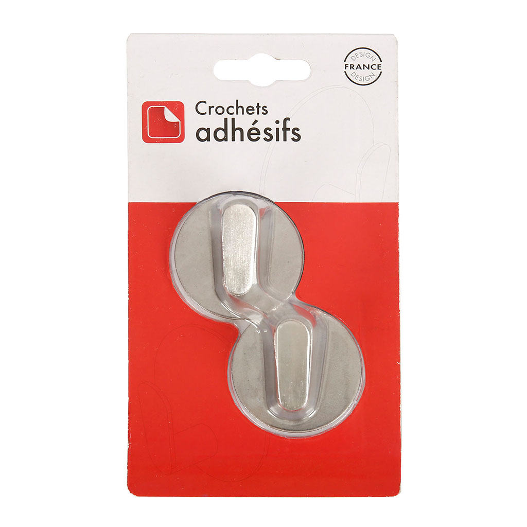 Lot de 2 crochets adhésifs rond inox tiges plates