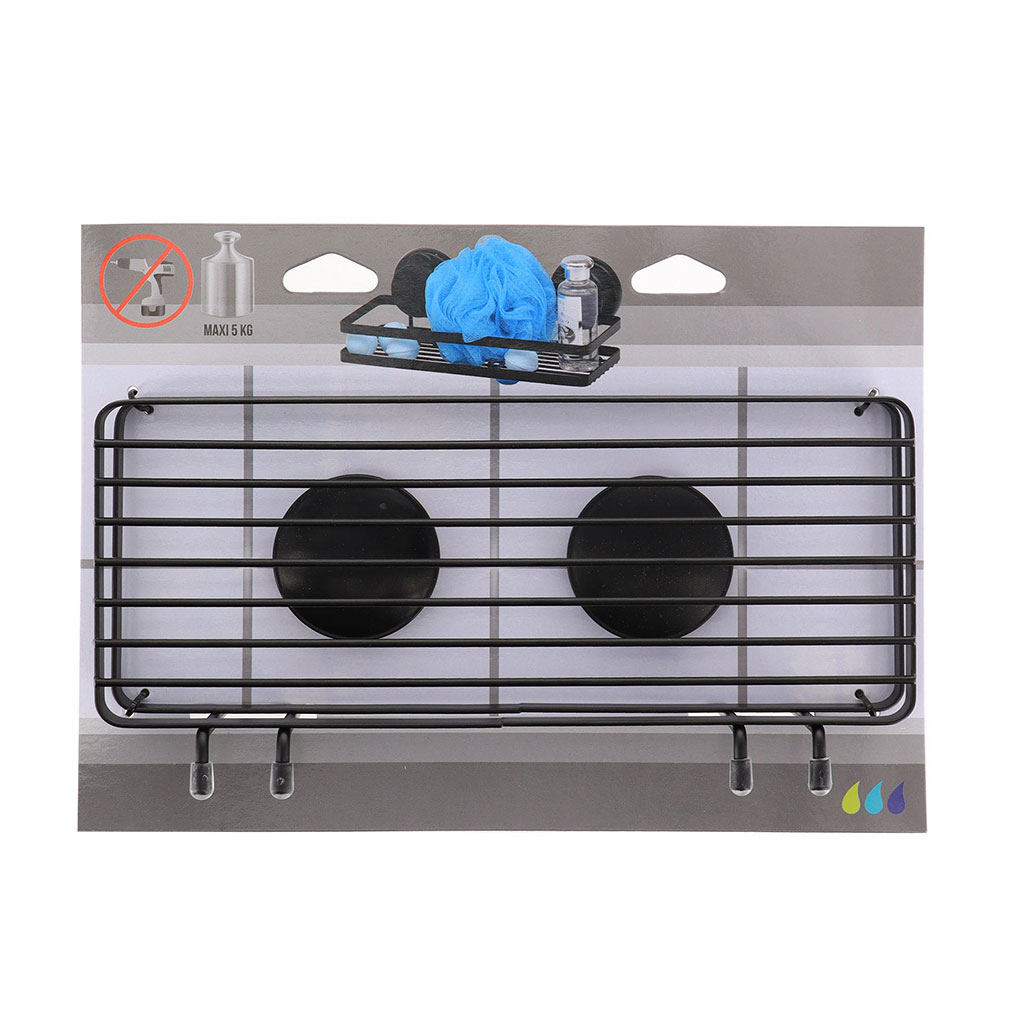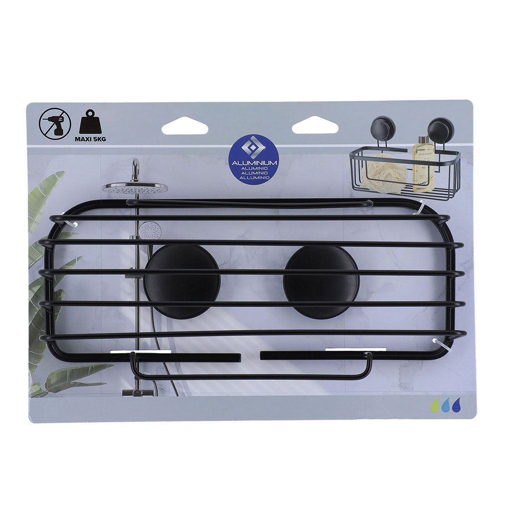 Panier de douche à ventouses métal noir 28x17.5x13.5cm