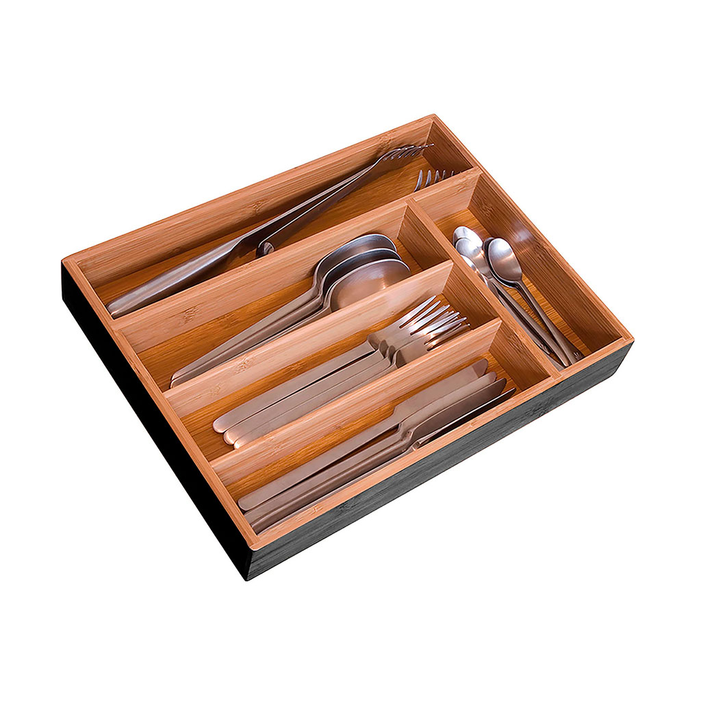 Range couverts 5 compartiments noir et bambou 4.5x37x30cm