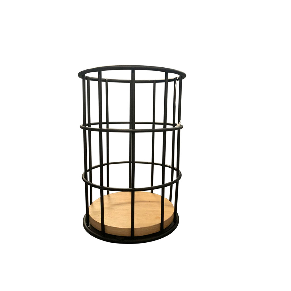 Pot à ustensiles rond métal et bambou noir 16.5x11x11cm
