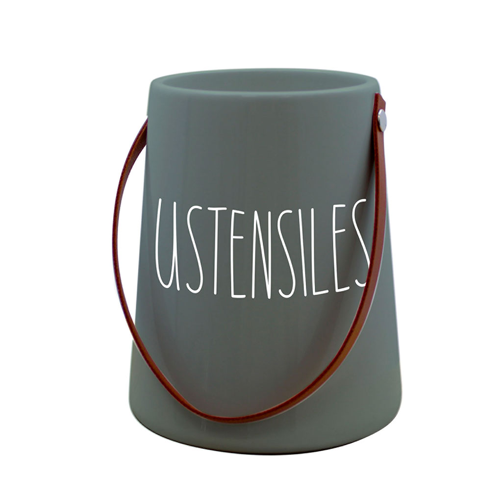 Pot à ustensiles plastique gris D 10x18.7cm