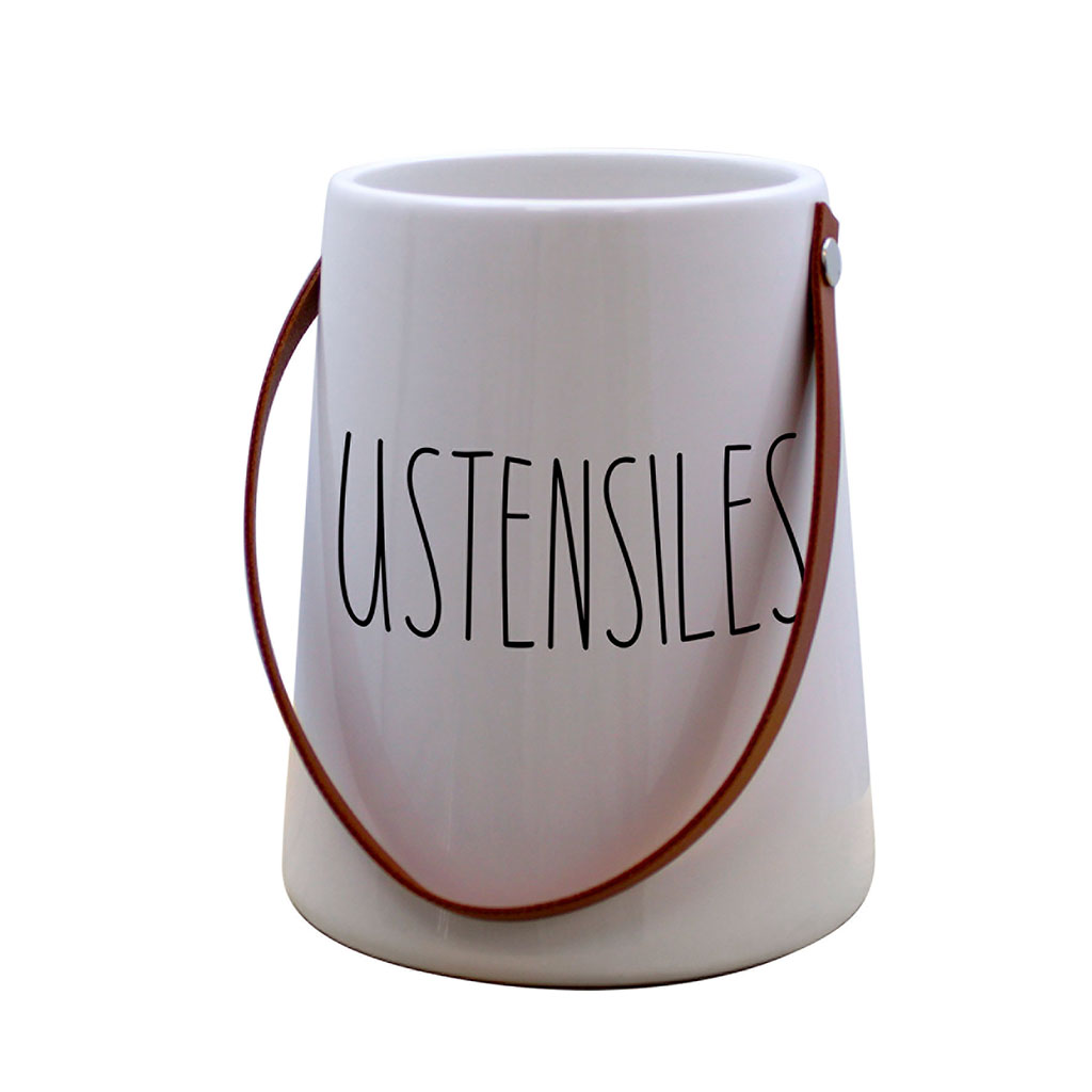 Pot à ustensiles céramique avec anse blanc D 12x14cm