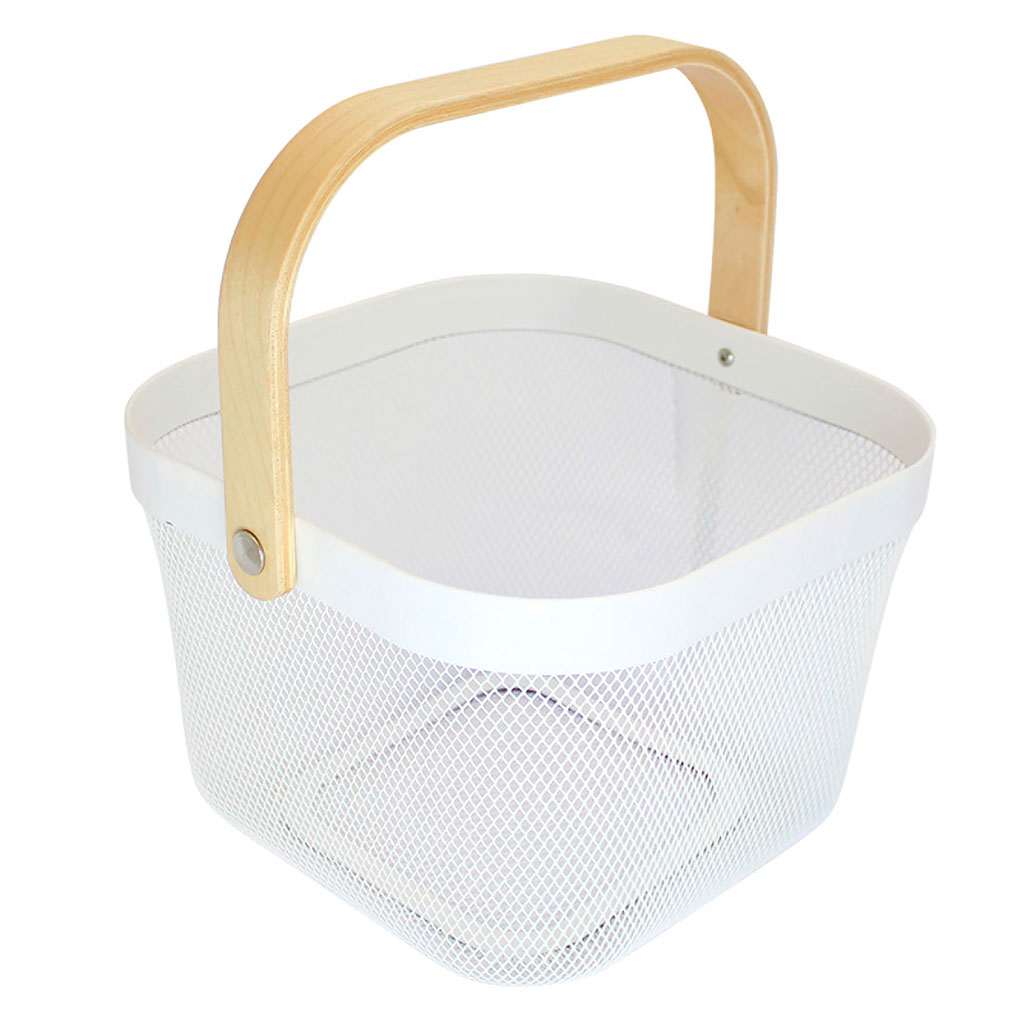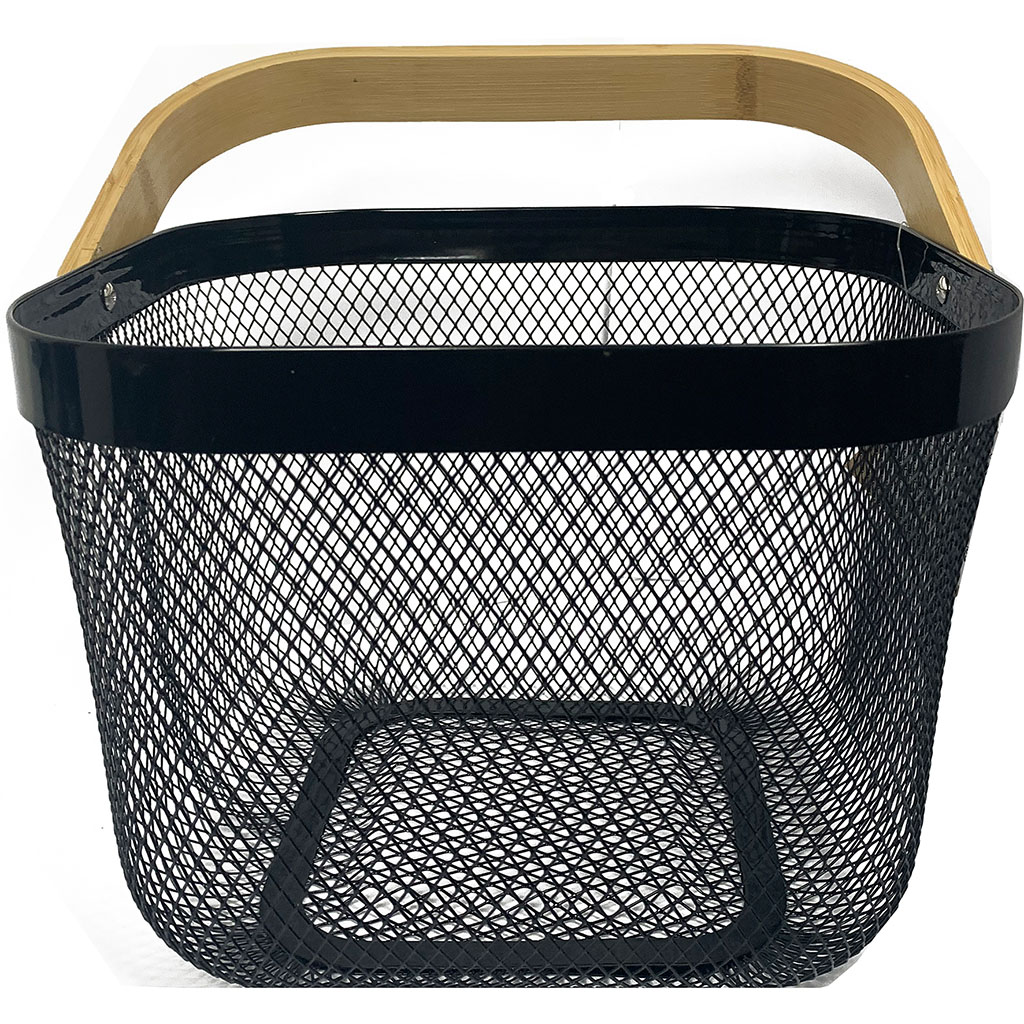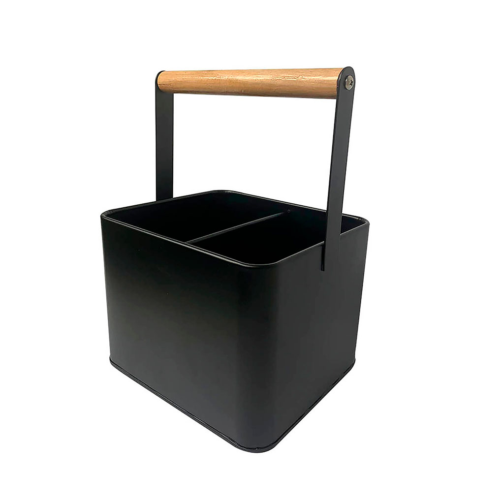 Porte ustensiles métal noir poignée bambou 25x18x15.5cm