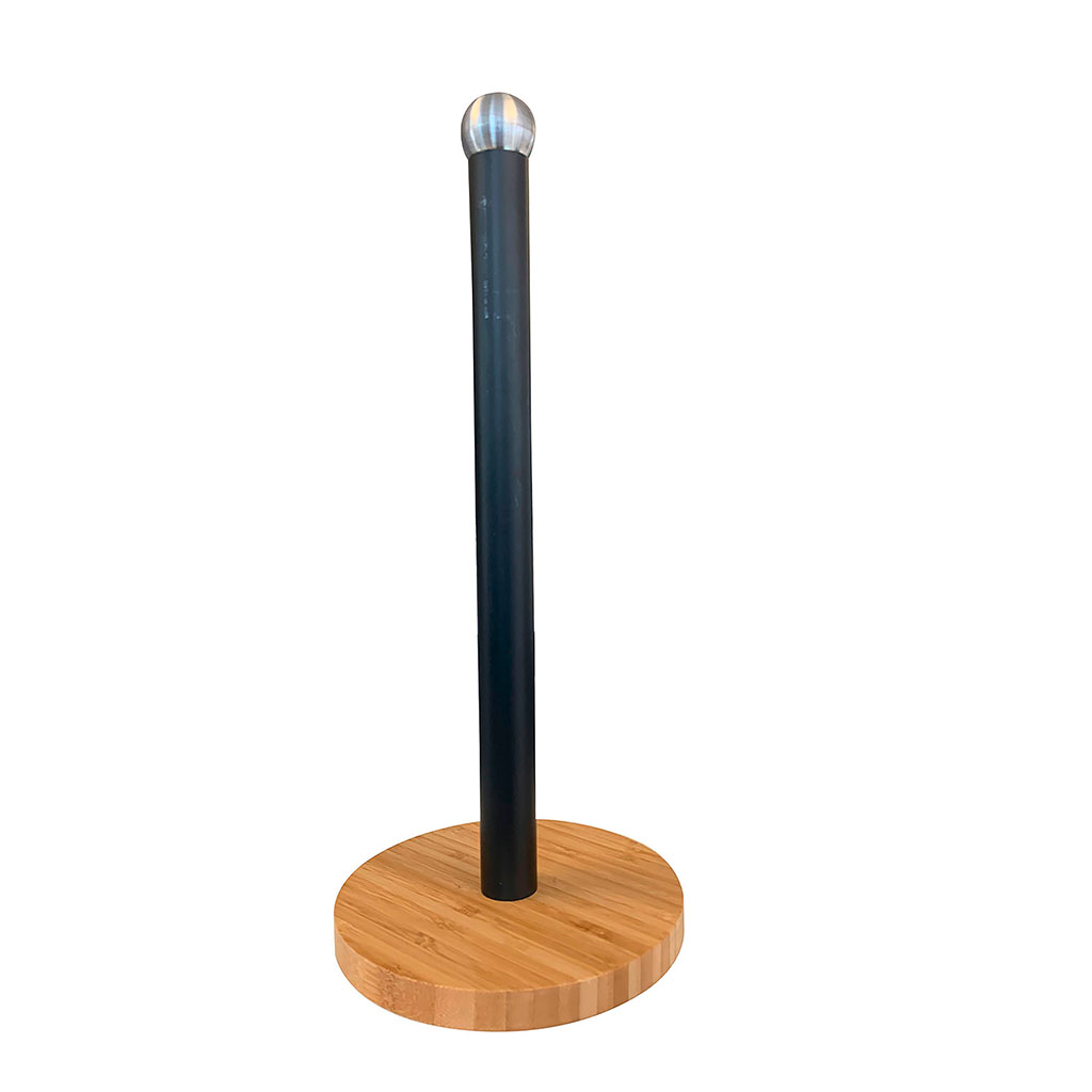 Porte rouleau métal noir pied bambou 34.5x15x15cm