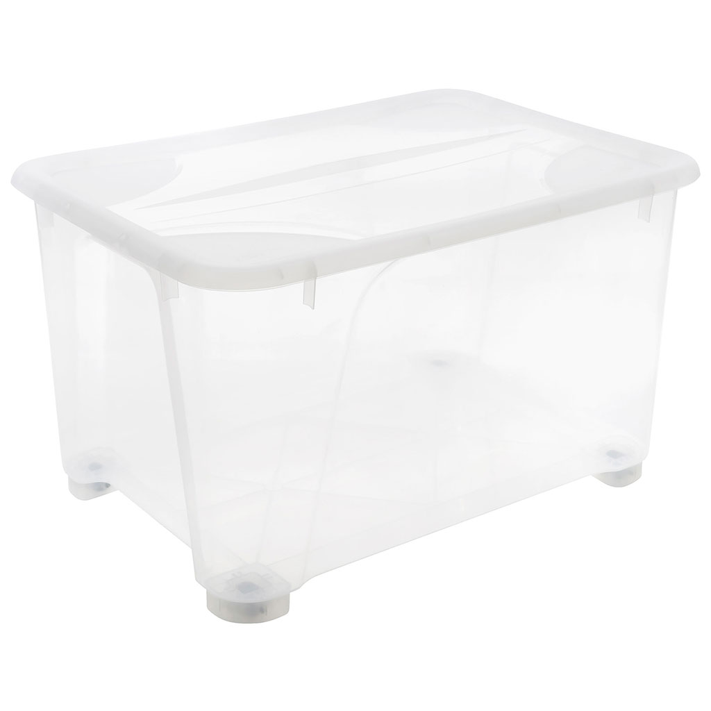 Boite de rangement à roulettes plastique transparent 140L