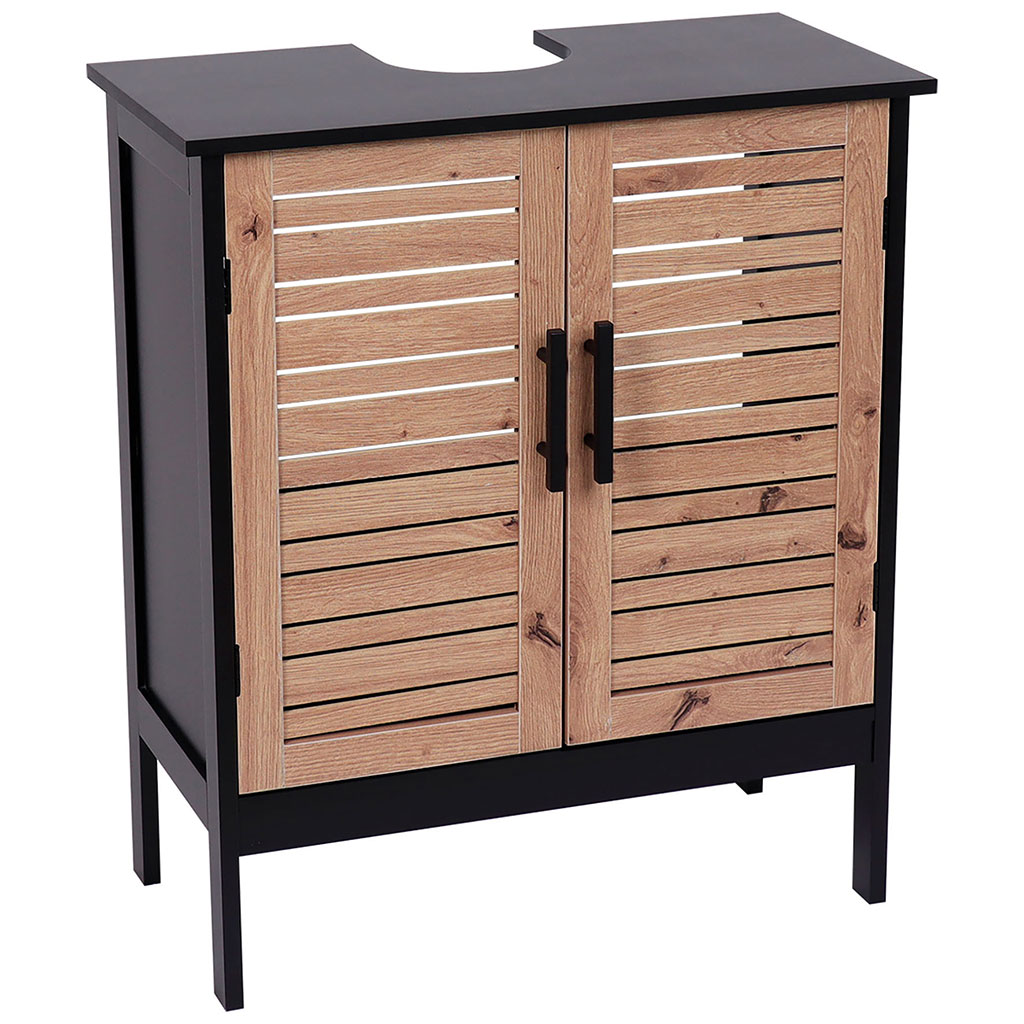 Meuble sous-lavabo BERGEN 2 portes noir et bois 60x70x30cm
