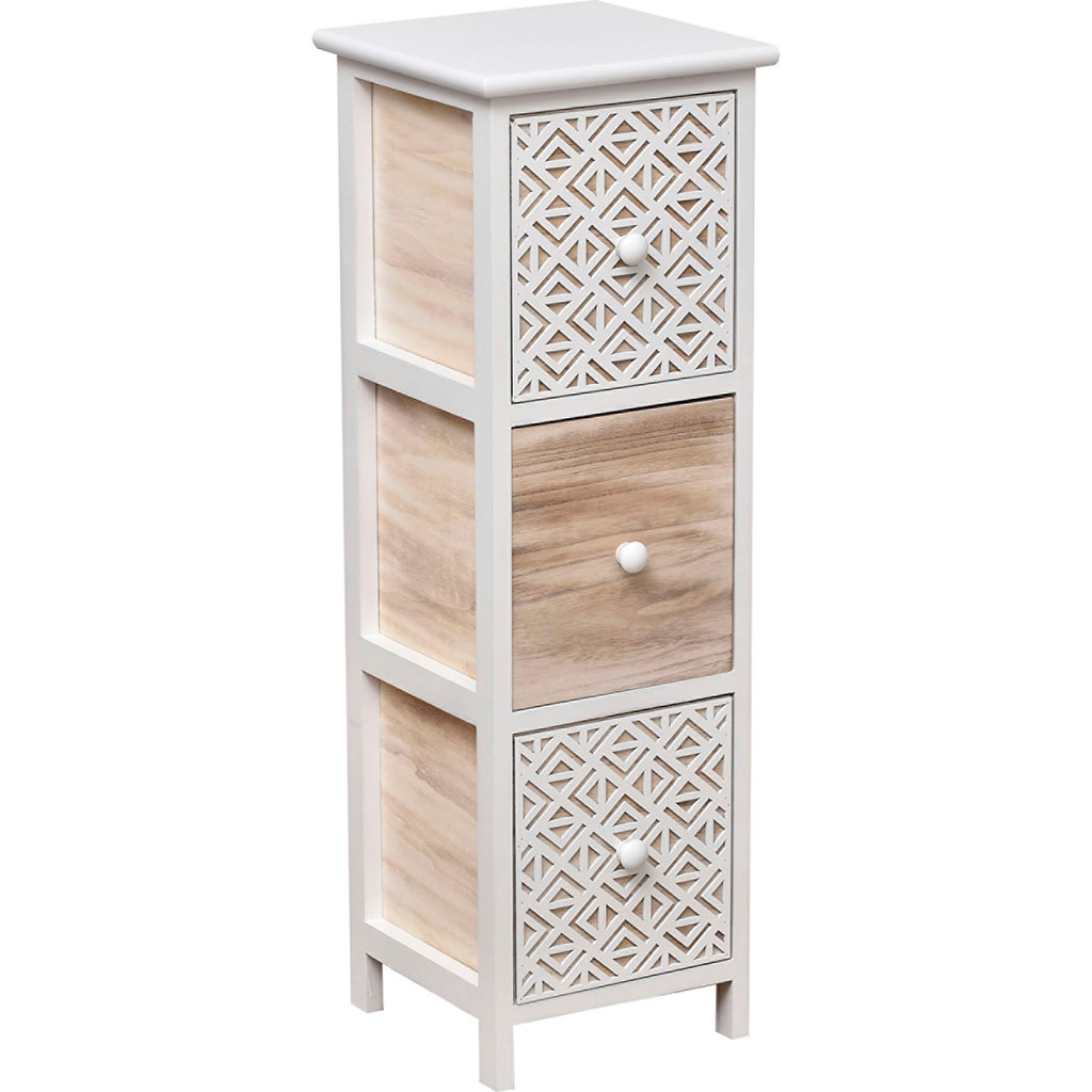 Meuble de rangement 3 tiroirs blanc et bois H 77cm