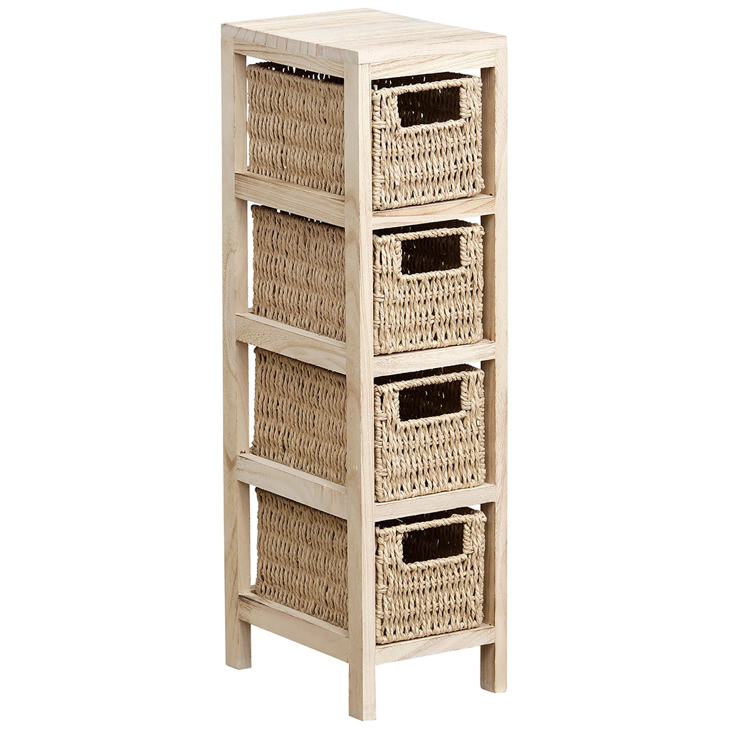 Meuble de rangement 4 paniers tressés naturel 17x64.5x24cm