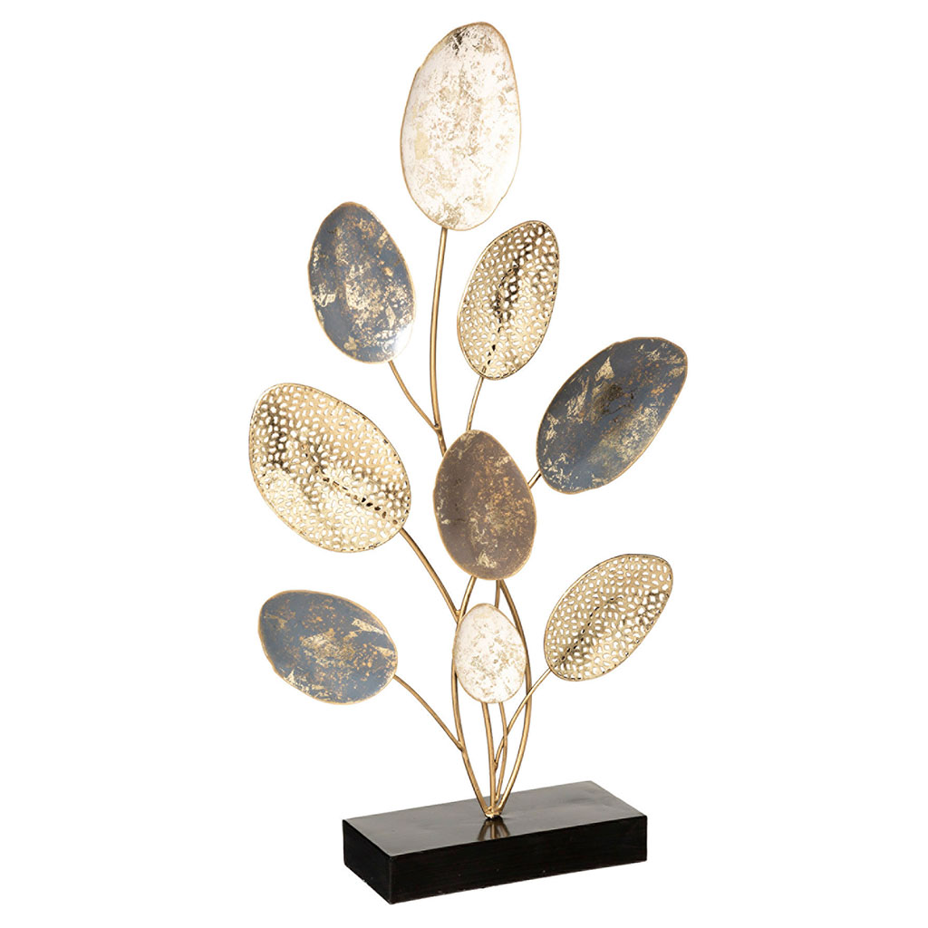 Décoration à poser métal feuille H 53cm