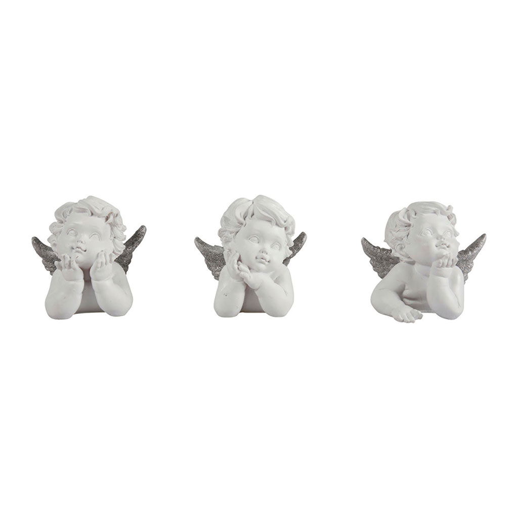 Décoration ange résine blanc argent 10x10.5x8cm