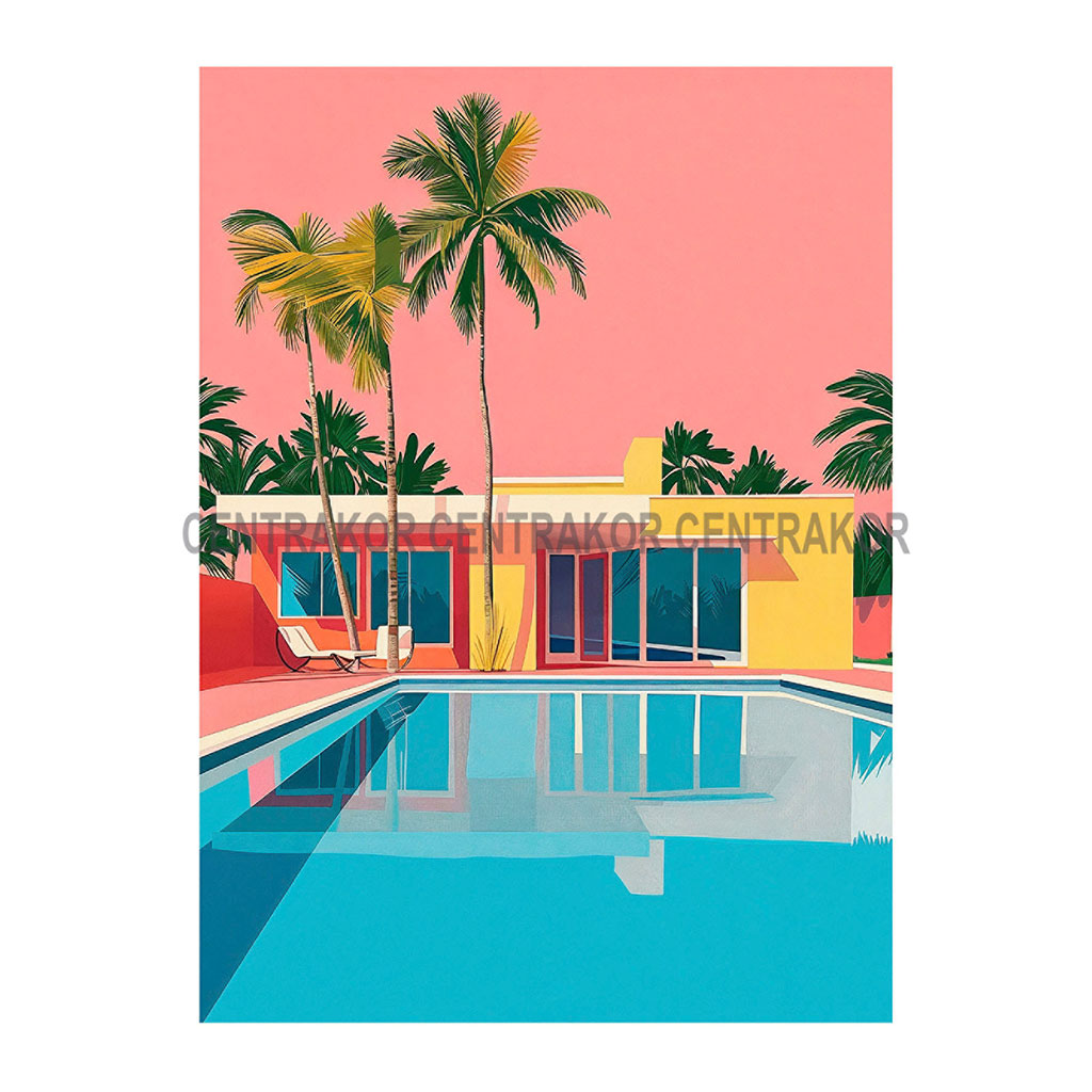 Affiche déco piscine palmiers art rétro 30x40cm