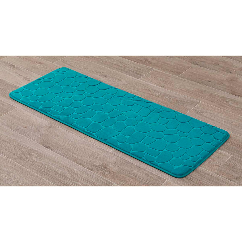 Tapis de bain mémoire de forme galets bleu canard 45x120cm