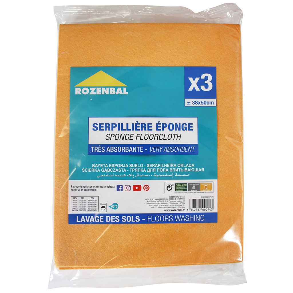 Lot de 3 serpillières éponge 38x50cm