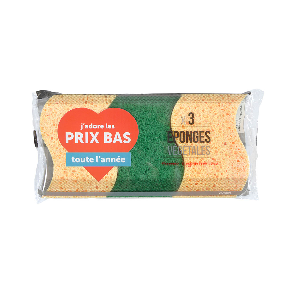 Lot de 3 éponges végétales bi-matière