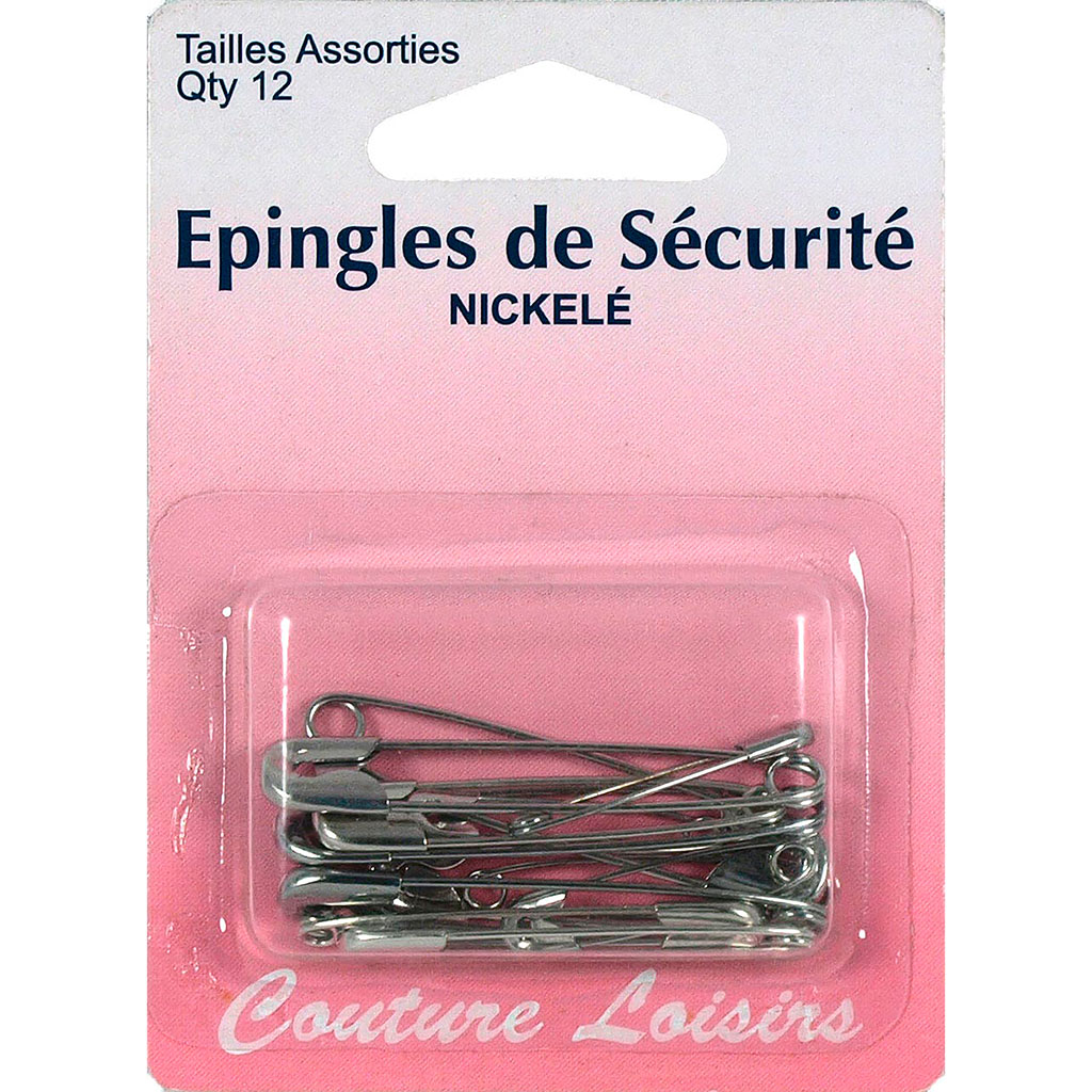 Lot de 12 épingles de sécurité nickelées 33mm
