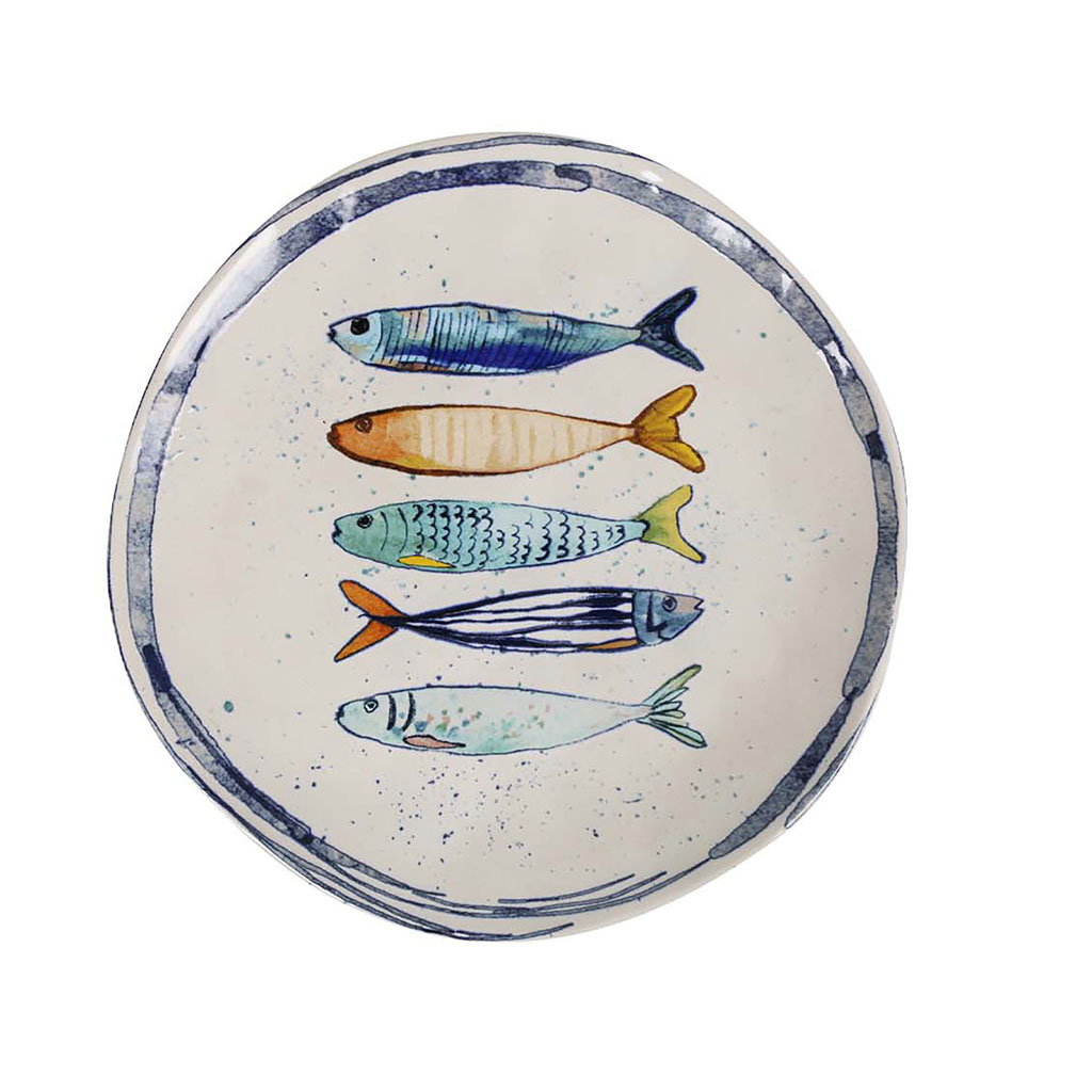 Assiette plate ronde céramique IRYS blanc et bleu D 26cm