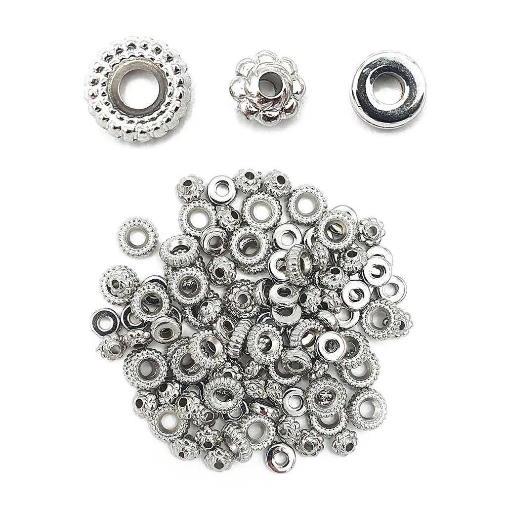 Lot de 105 perles intercalaires Heishi argentées