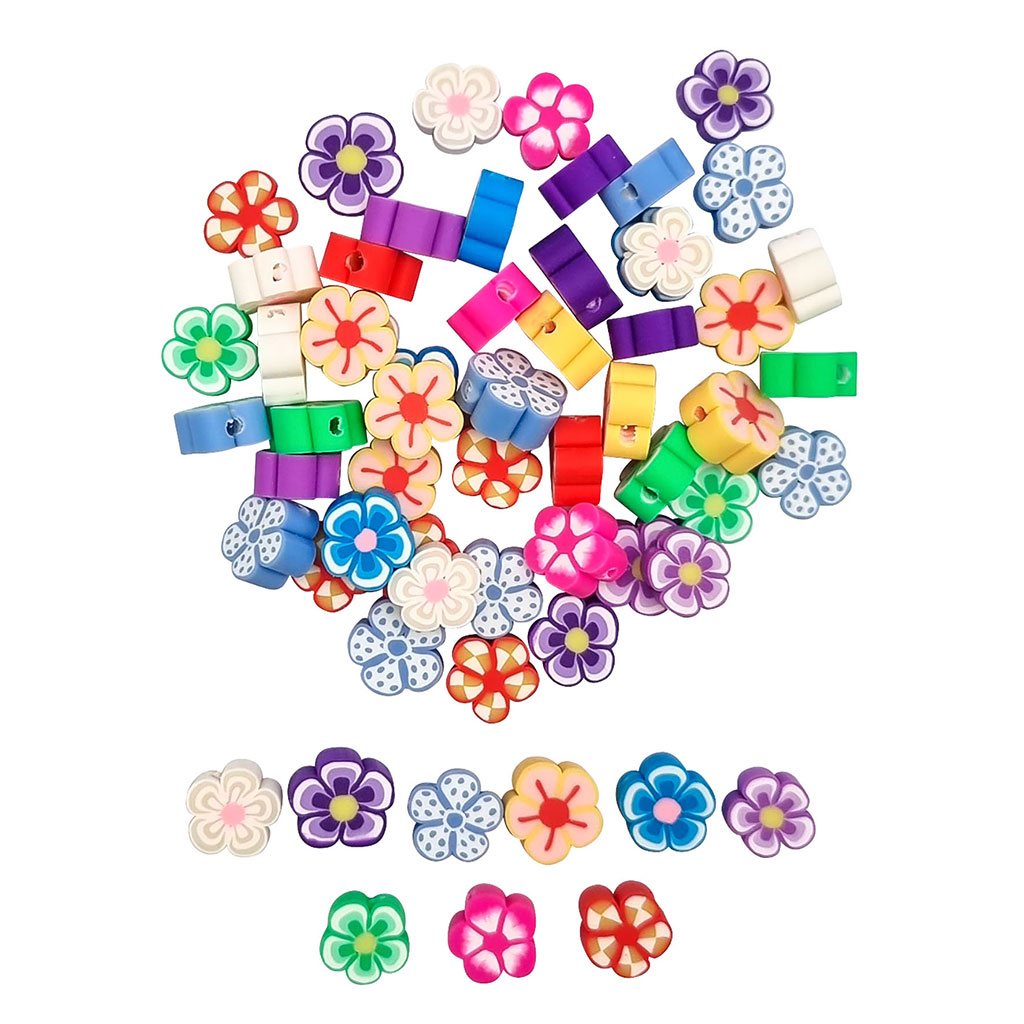 Lot 60 perles polymère fleurs