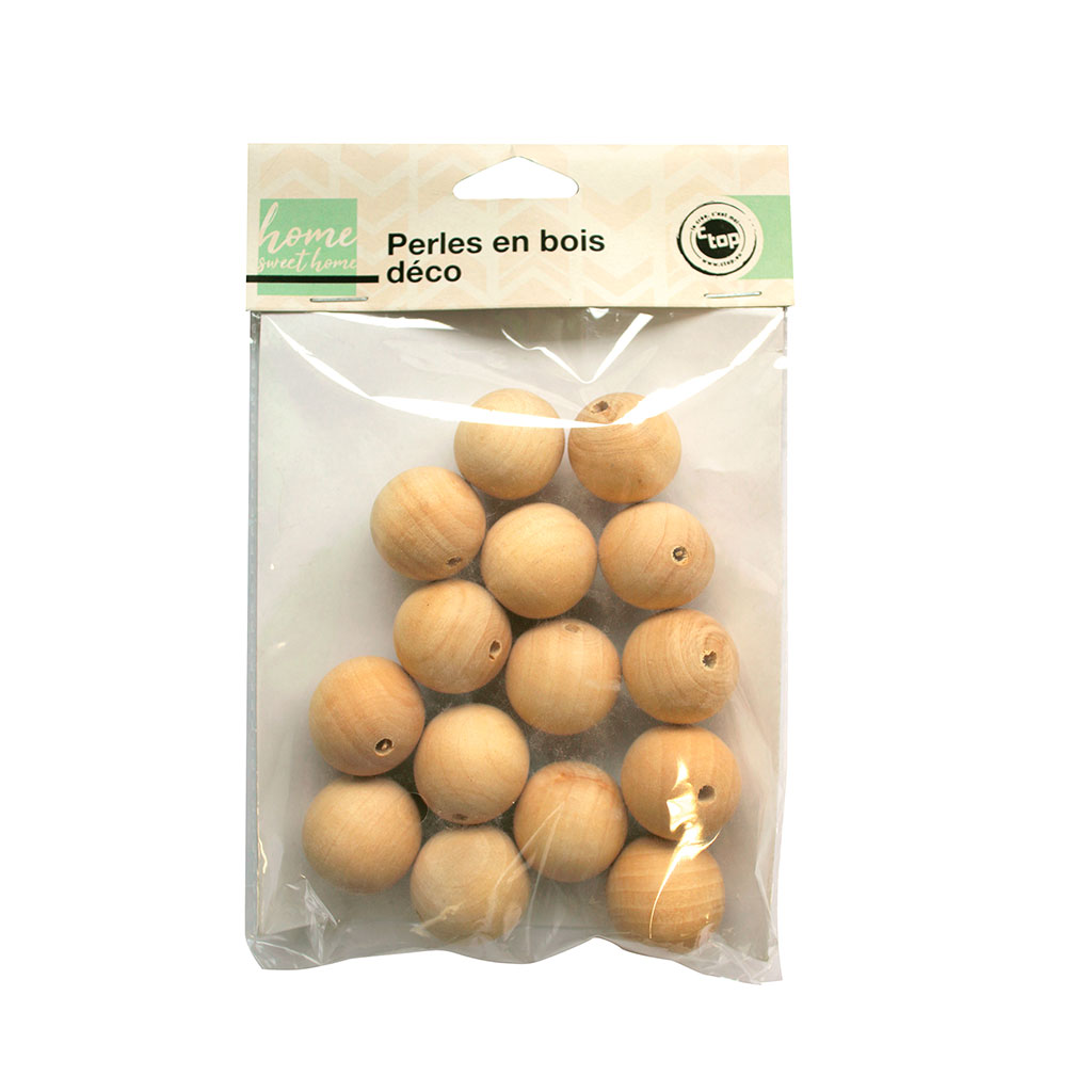 Lot de 15 perles en bois D 2.5cm