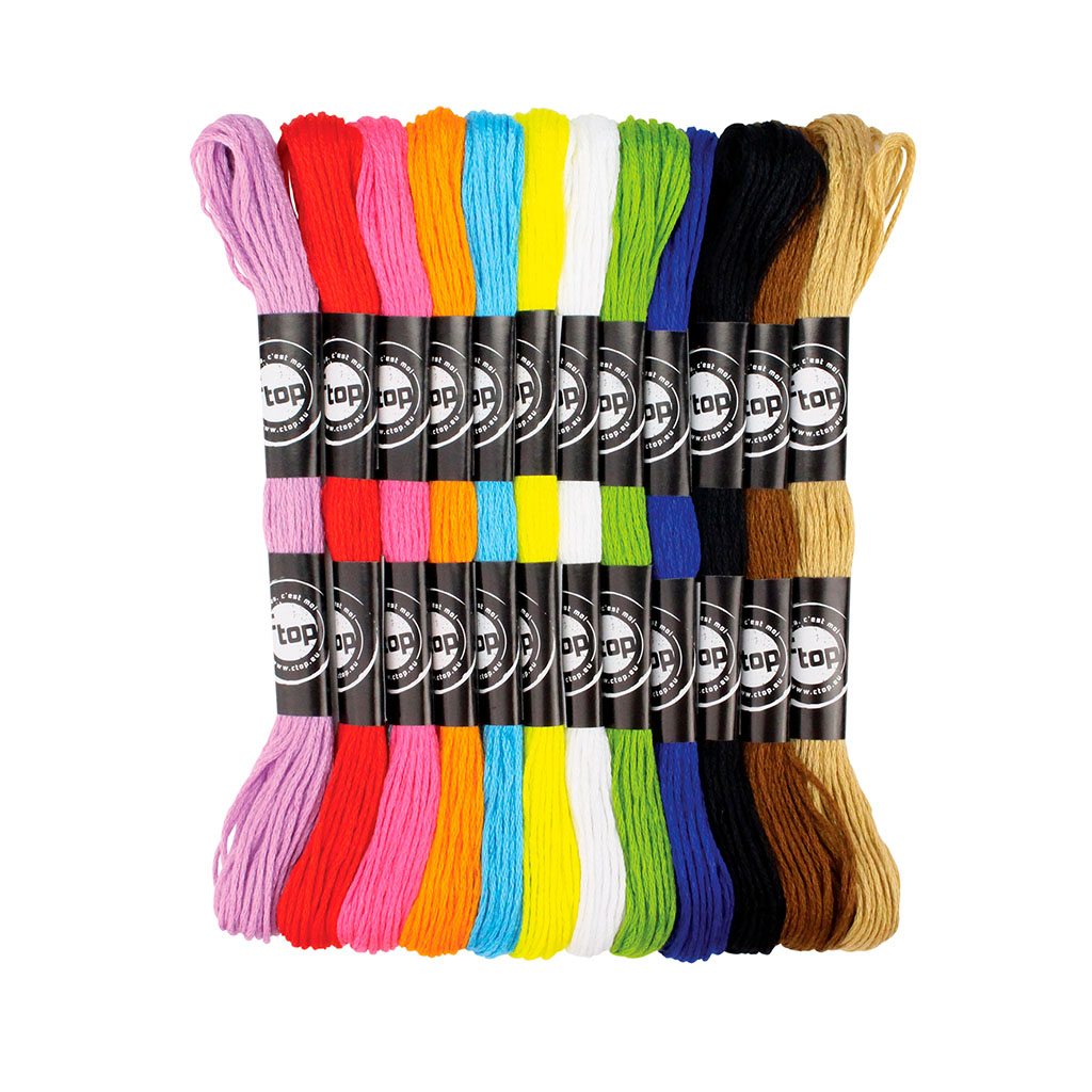 Lot de 12 fils échevettes coton couleurs vives 8M